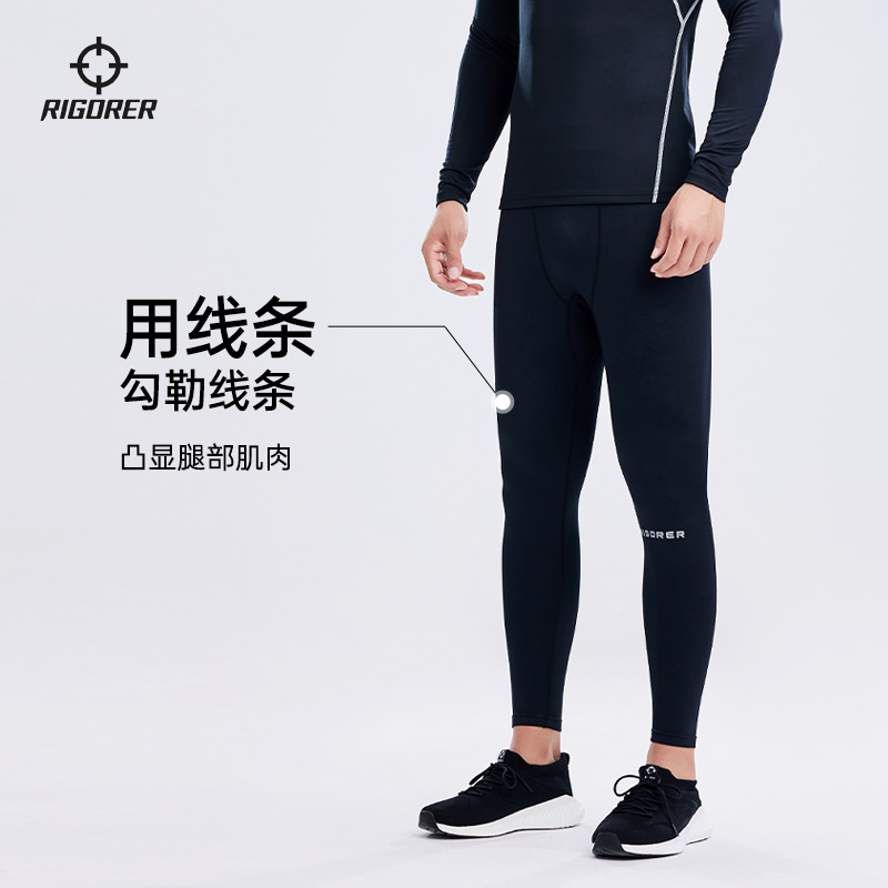 准者运动紧身裤九分压缩裤男士器械长裤跑步裤训练弹性加绒健身裤