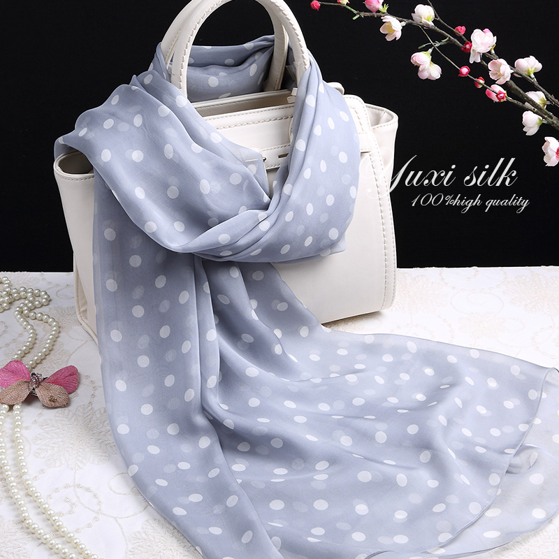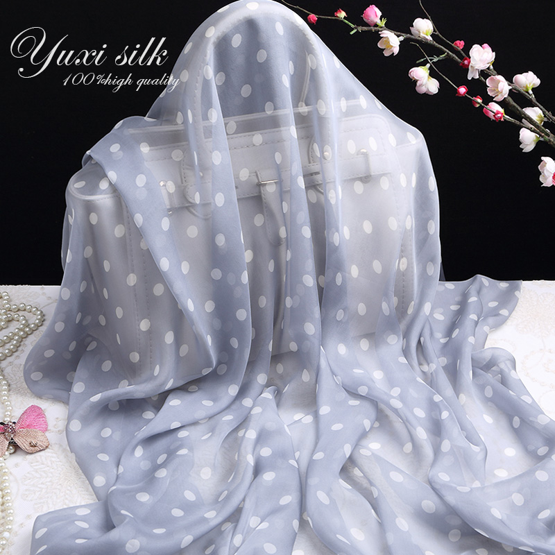 灰色波点圆点100%桑蚕丝长款真丝丝巾披肩女士春秋冬夏季丝绸围巾