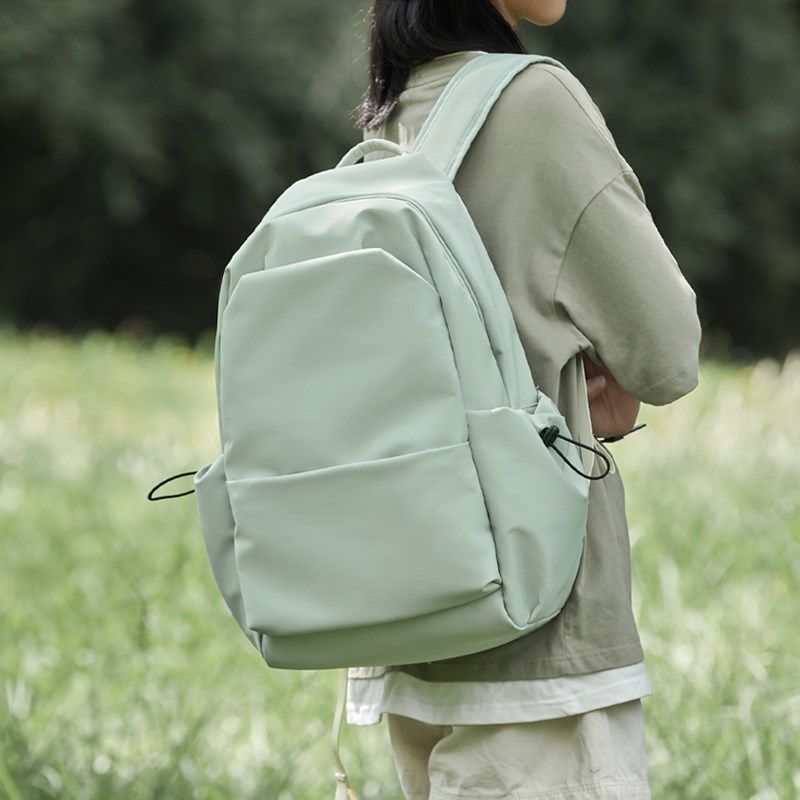 双肩包女大学生轻便大容量纯色简约书包2024新款高中旅游登山背包