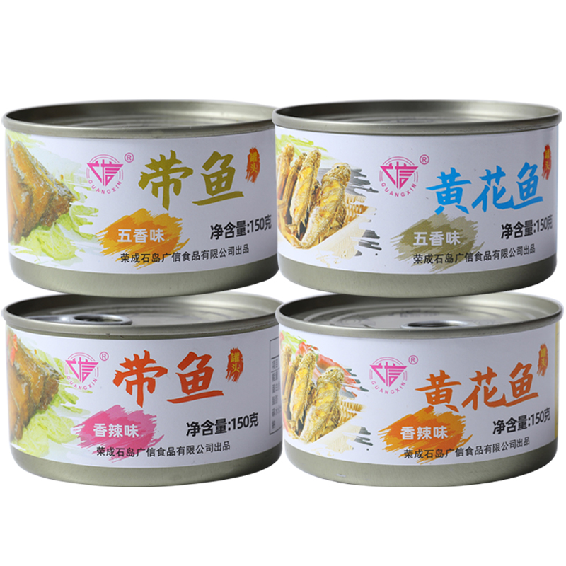 4罐装红烧香辣带鱼罐头海鲜即食香酥五香带鱼黄花鱼罐头150gx4罐