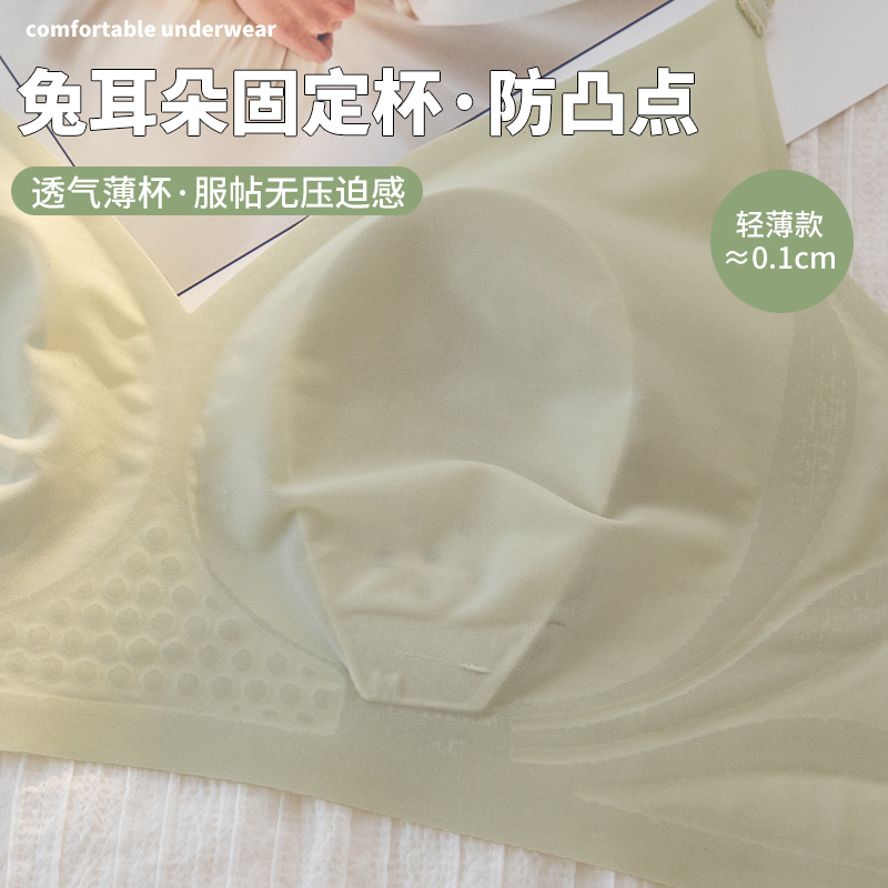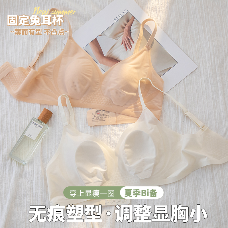 凉感兔耳朵无痕超薄内衣女大胸显小大码防下垂夏季文胸罩隐形性感