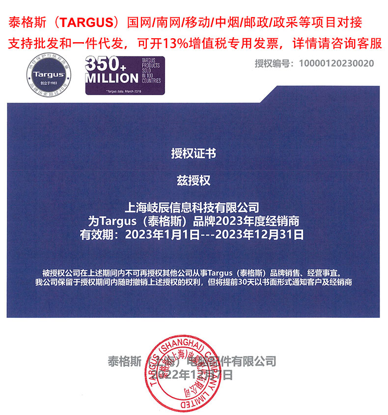 Targus/泰格斯双肩电脑包拉杆箱定制LOGO批发团购