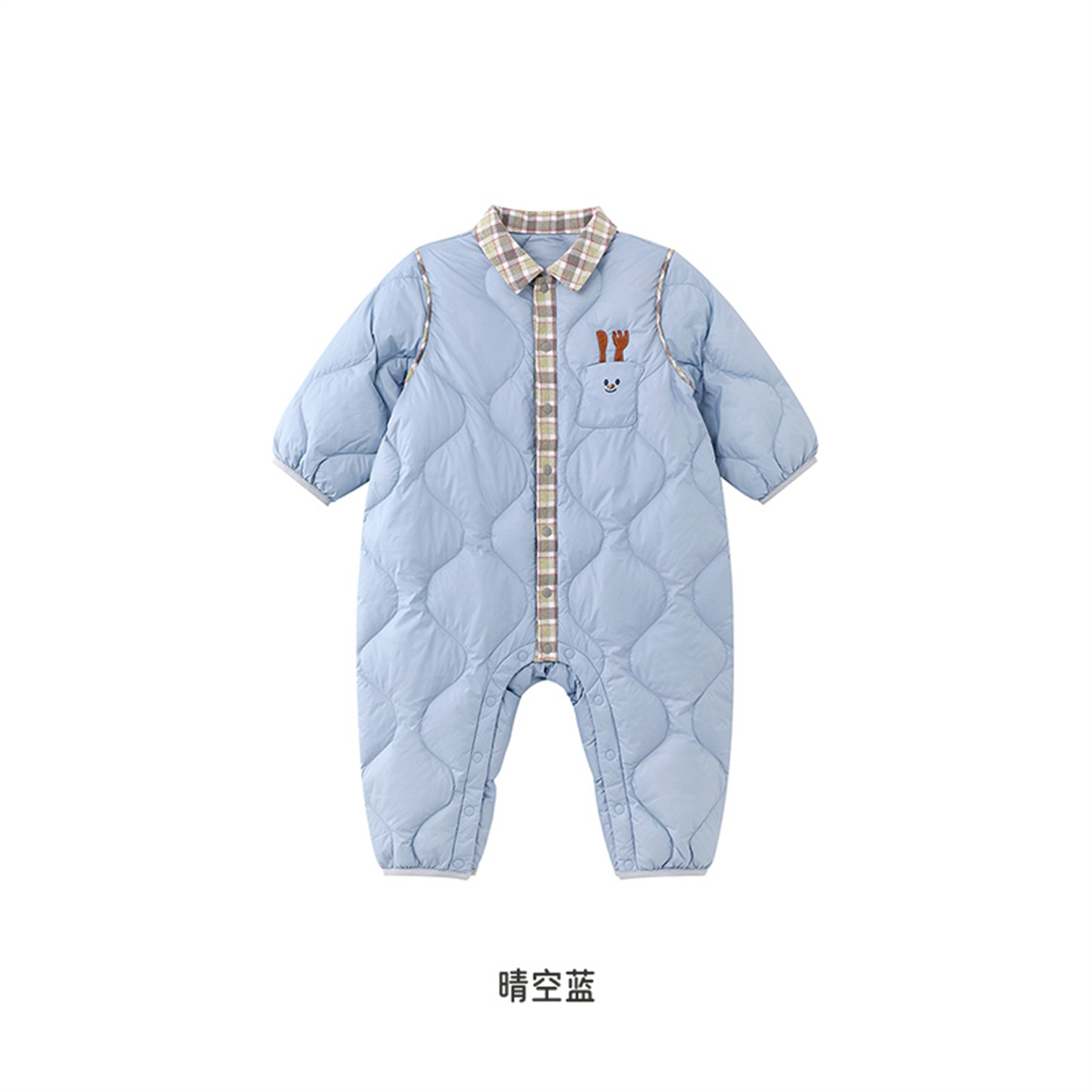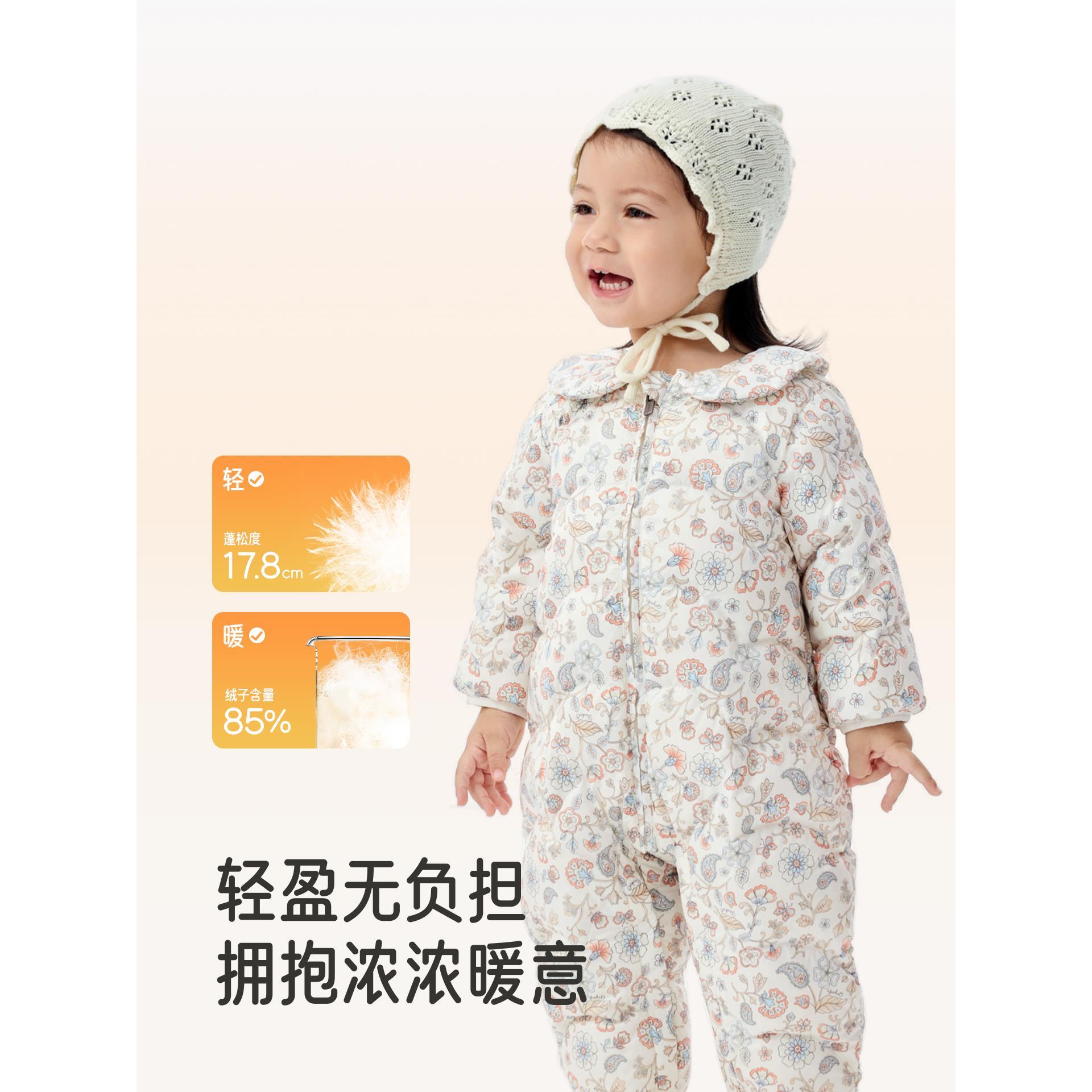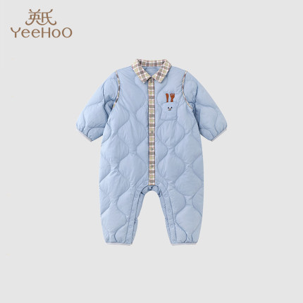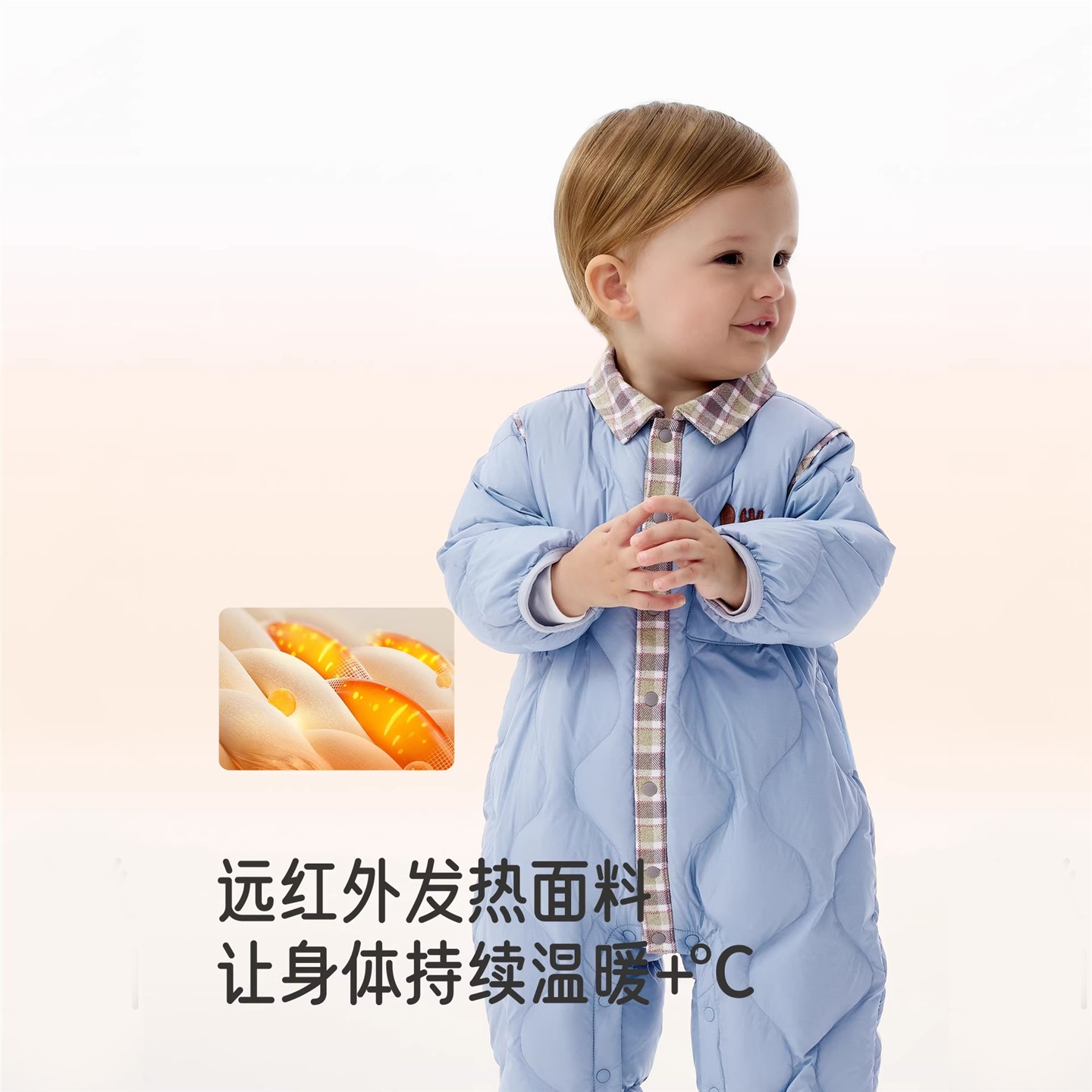 英氏婴儿羽绒服2025新款男女宝外出防寒连体哈衣小男孩羽绒衣服