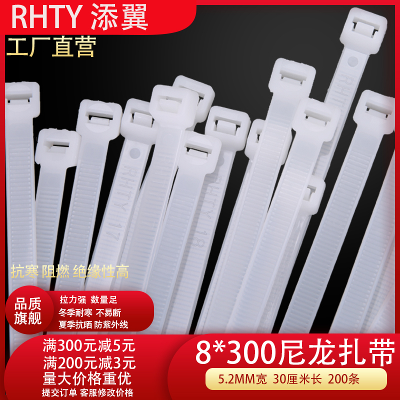 扎带8*300尼龙卡扣 扎带尼龙 塑料扎带 勒死狗 捆线带5.1宽200条
