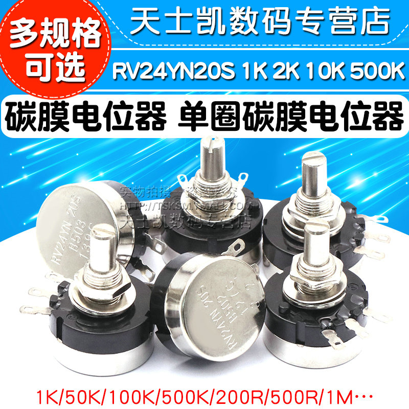 RV24YN20S单圈碳膜电位器可调电阻+刻度片+旋钮1K2K 10K 100 500