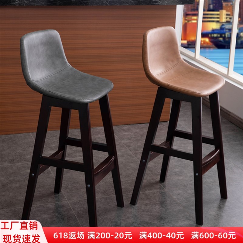 实木吧台椅家用靠背椅子北欧酒吧椅高脚凳现代简约奶茶店吧台凳子