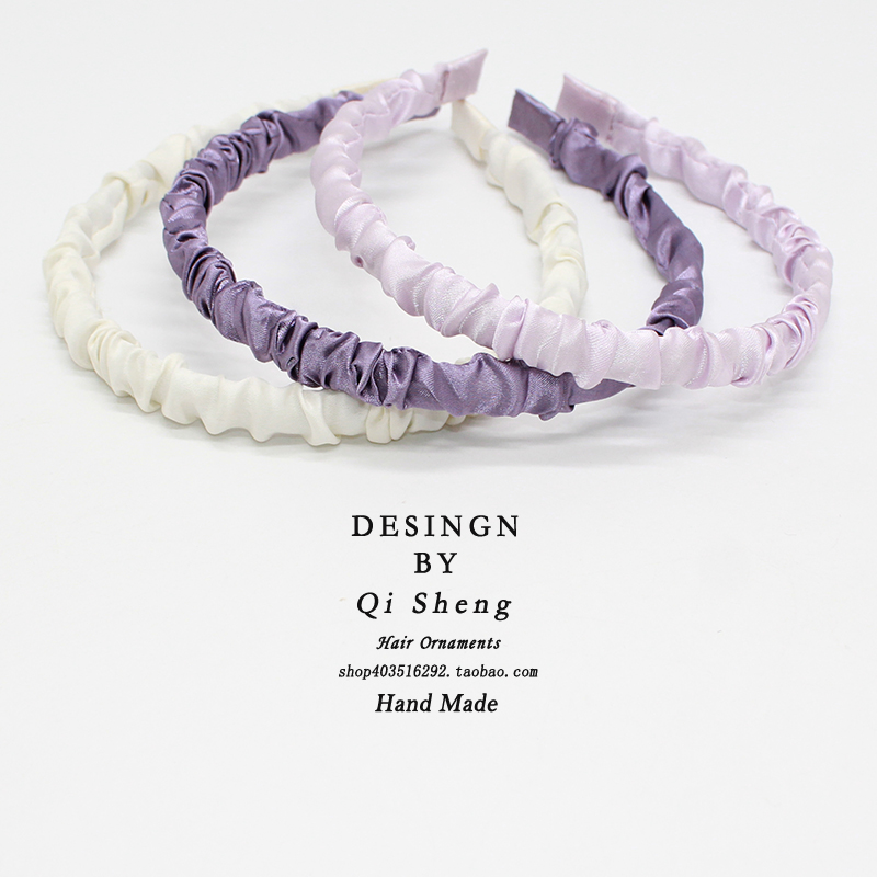 发箍缎面甜美褶皱窄版