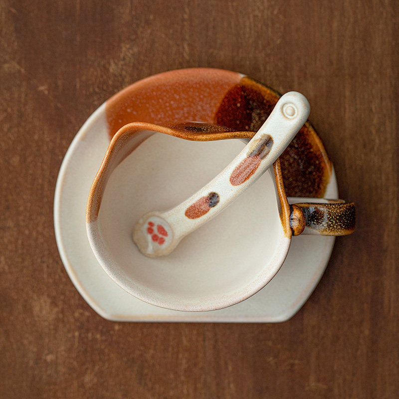 同合日本进口三花猫咖啡杯日式可爱创意布引烧陶瓷下午茶杯子套装