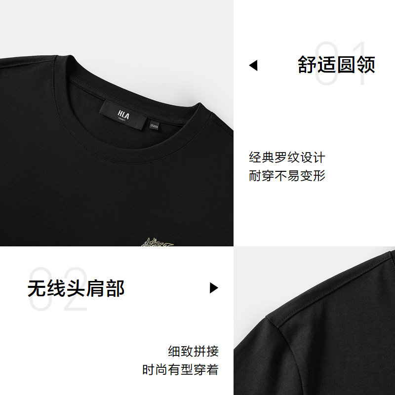 HLA海澜之家龙年黑色短袖t恤男士2025夏新款时尚宽松印花体恤半袖