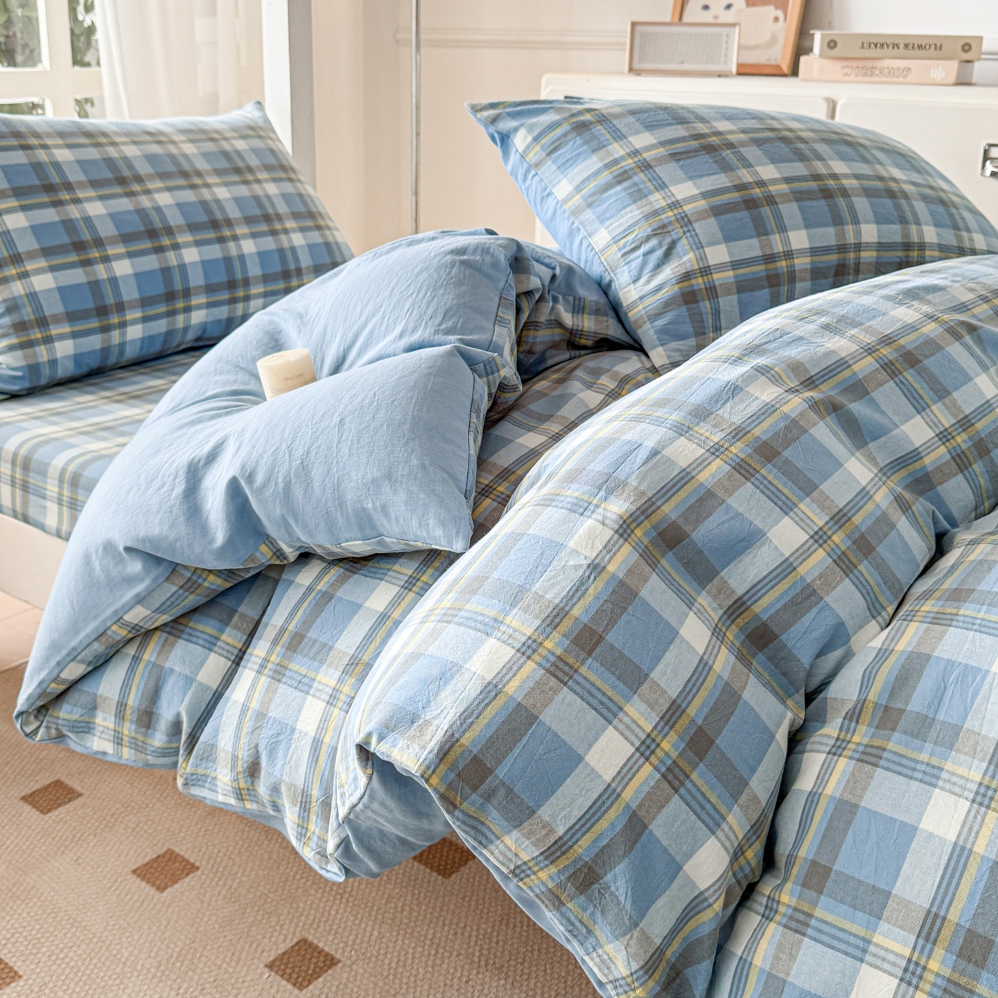 无印风大学生宿舍六件套水洗棉拎包入住非全棉纯棉被套床单三件套