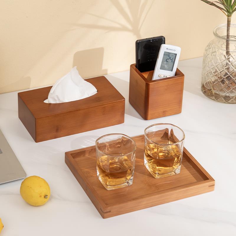 喆啡酒店同款遥控器收纳盒纸巾盒宾馆客房楠竹托盘可加logo包邮