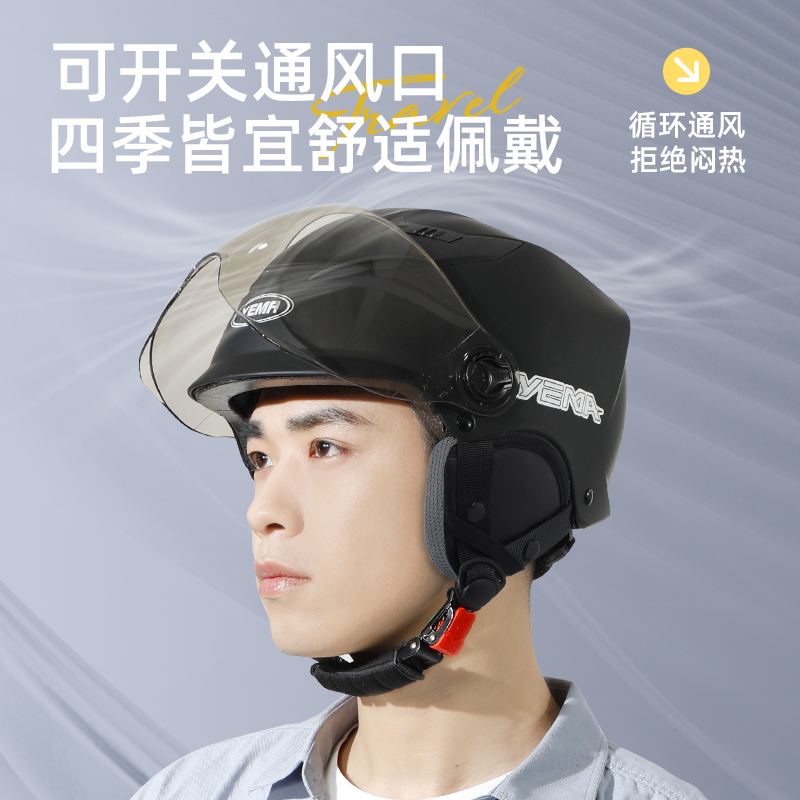 野马3C认证电动摩托车头盔男女四季通用半盔防晒大码电瓶车安全帽