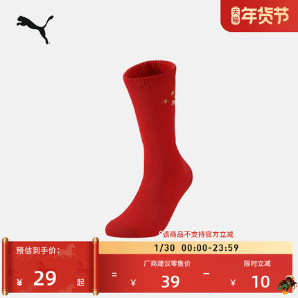 新年红色吸汗透气中筒袜PUMA彪马