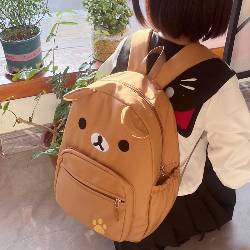2025新款日系可爱小熊背包帆布双肩包大容量百搭学生书包生日礼物