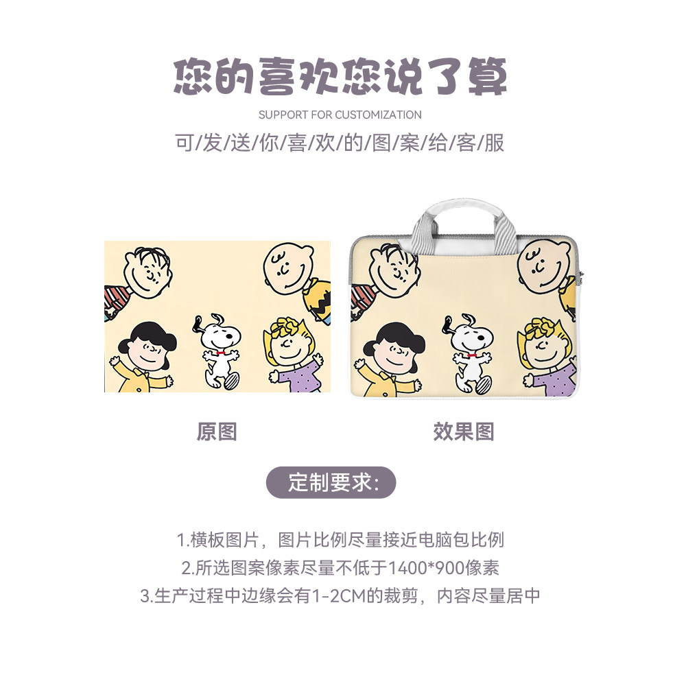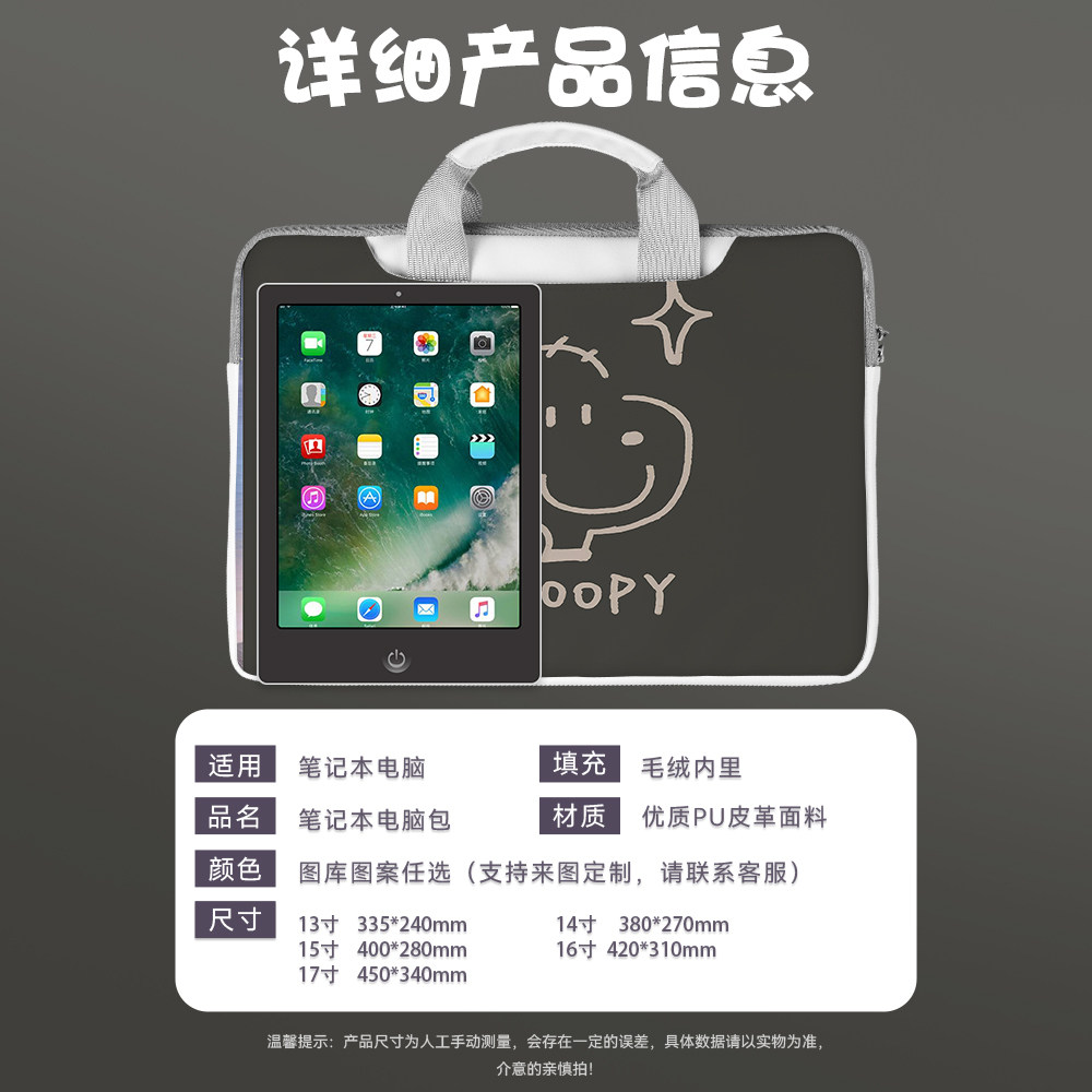 史努比笔记本手提电脑包可爱防震苹果华为小米戴尔联想卡通包游戏本15.6寸14皮革可斜挎笔记本16内胆保护ins