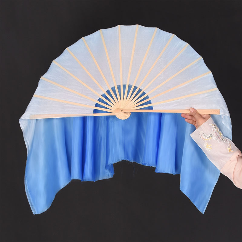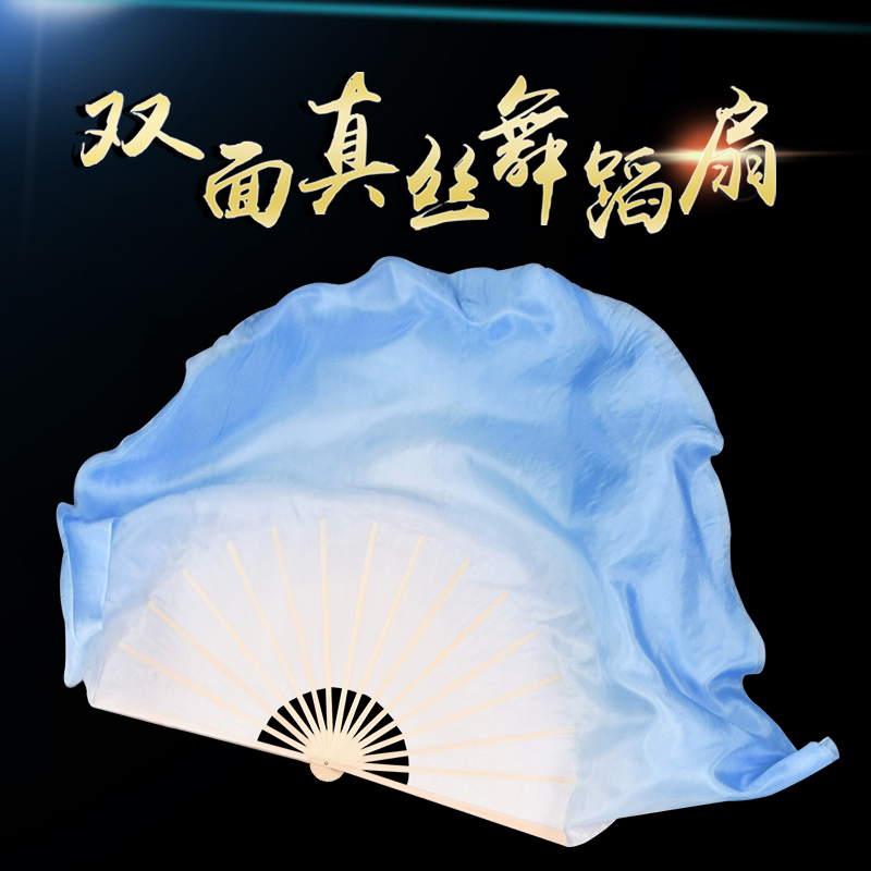 现货速发舞蹈扇子 跳舞扇 双面 真丝 浅蓝白渐变儿童成人舞扇表演