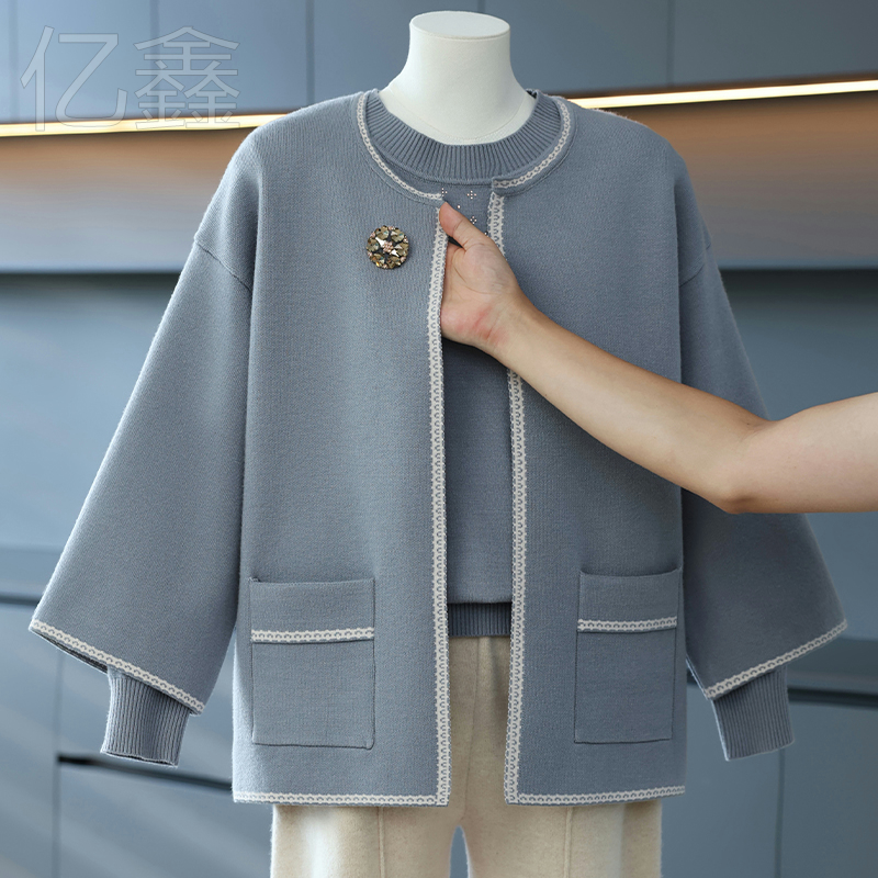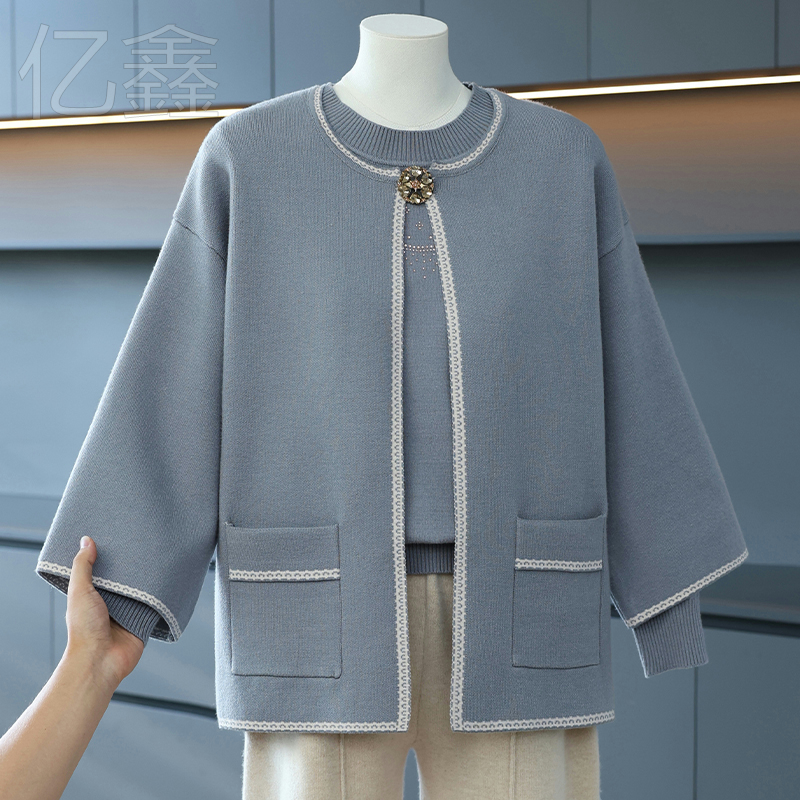 洋气妈妈秋装新款两件套装上衣毛衣开衫中老年人女装大码春秋外套