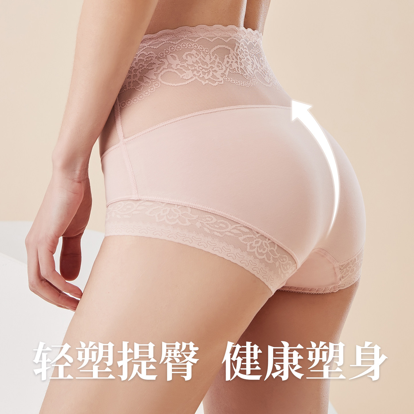 高腰内裤女士棉7A抗菌裆收腹收小肚子无痕蕾丝性感提臀薄款三角裤