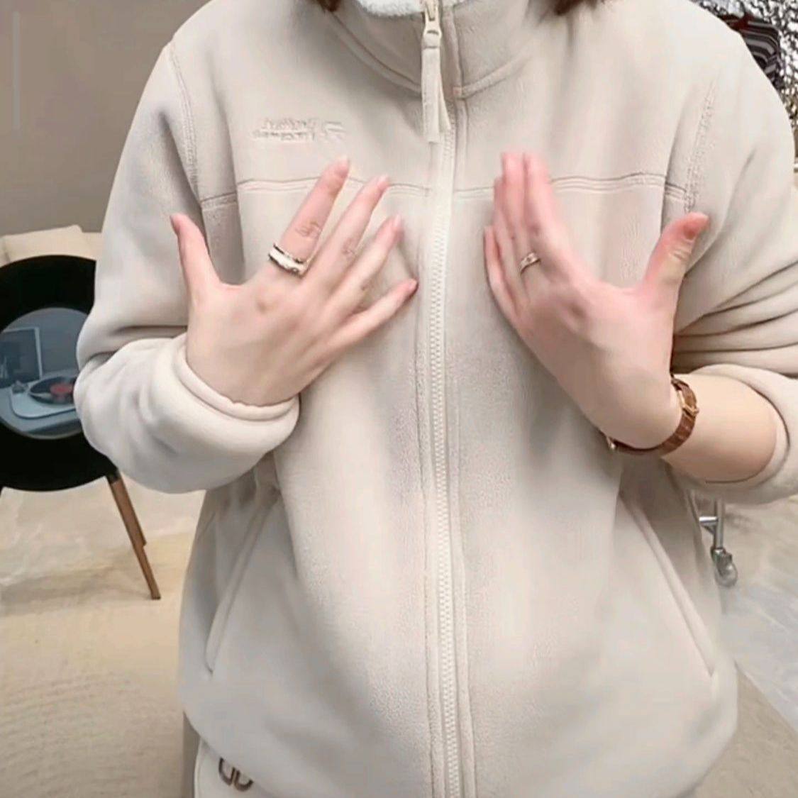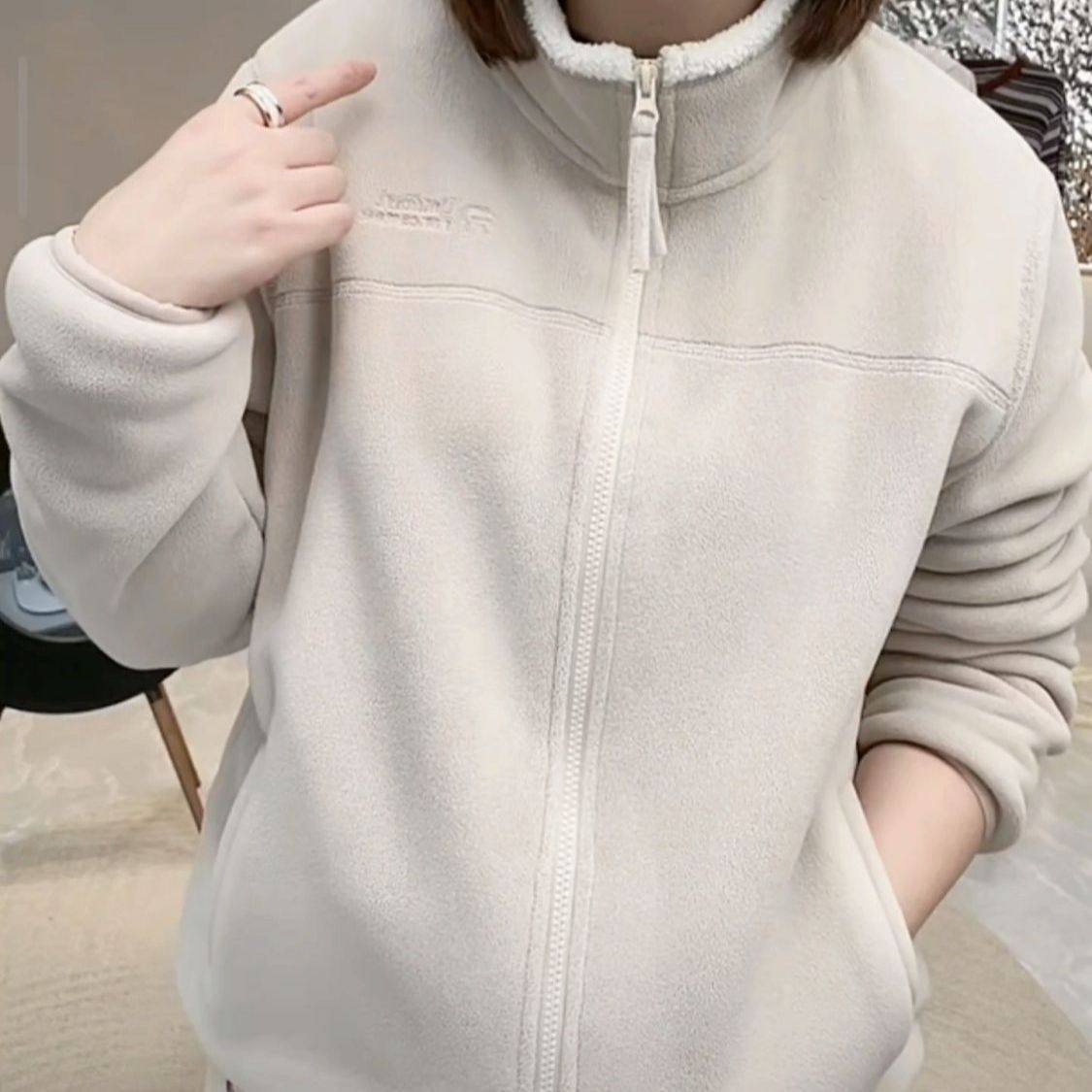 大码女装长袖宽松保暖卫衣秋冬季新款休闲百搭加绒加厚立领外套女