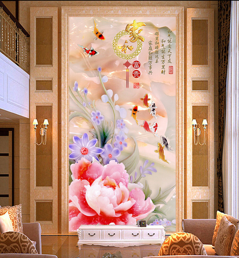 十字绣钻石画2021新款包邮5d满钻家和富贵九鱼图竖版客厅玄关贴钻