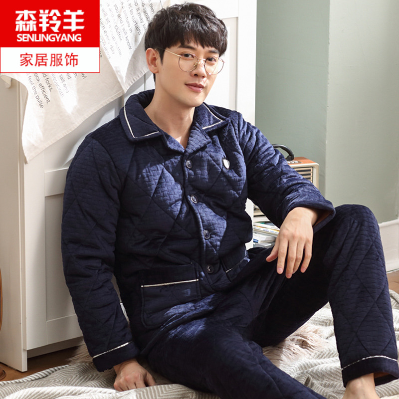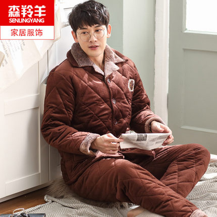 三层夹棉法兰绒胖子中老年家居服