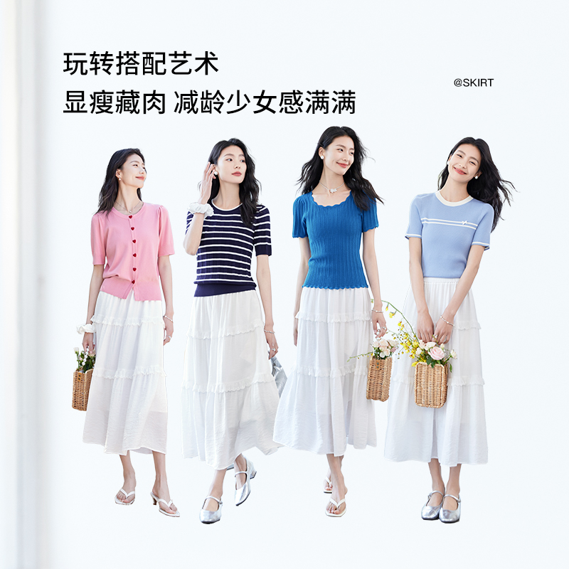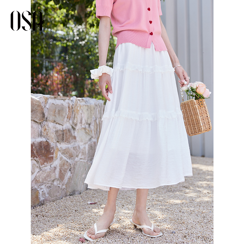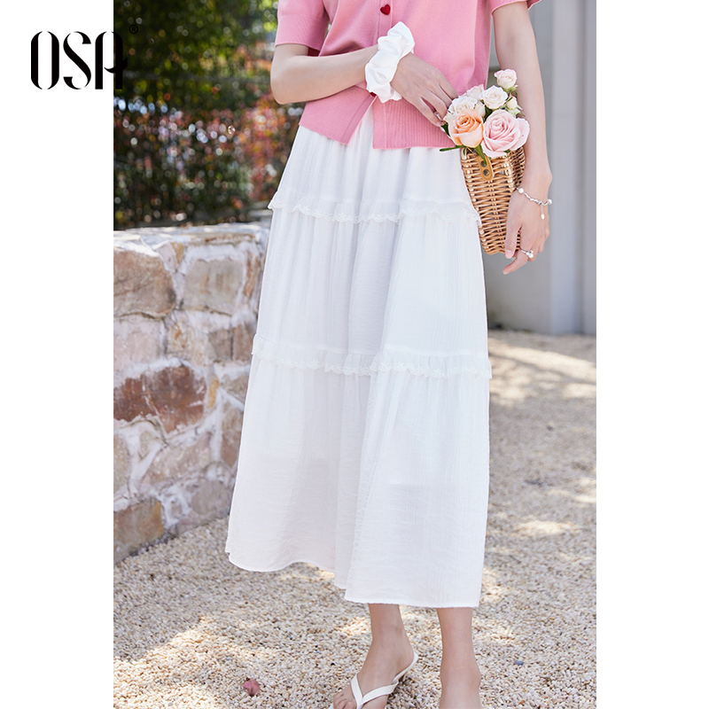 OSA欧莎浪漫法式蕾丝拼接蛋糕裙女夏季新款轻盈遮胯显瘦半身裙子