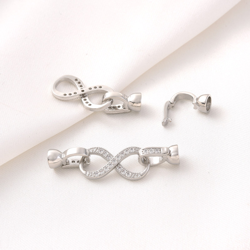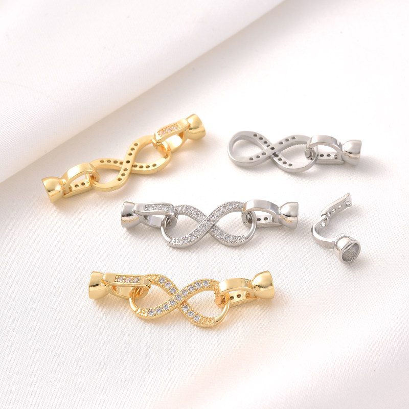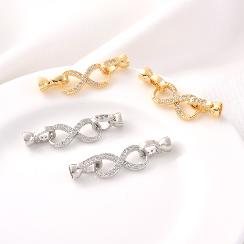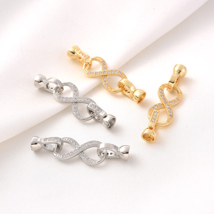 18K包金微镶锆石8字单排珍珠扣手工diy手链项链收尾白金色连接扣