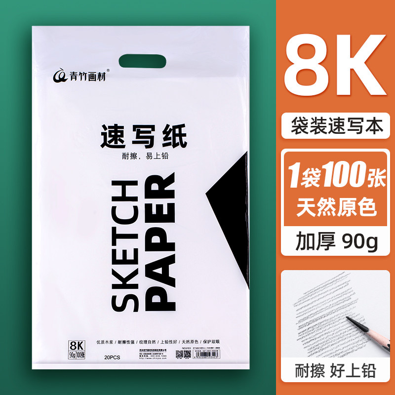 青竹流光白速写纸8k学生素描纸素描本空白专业美术本画画手绘本100页写生绘画涂鸦50页90克加厚学生用速写本