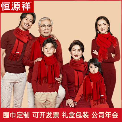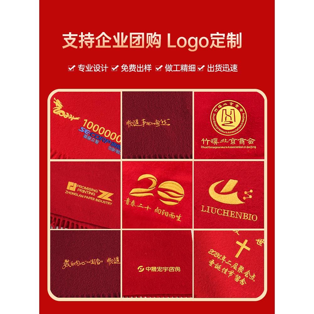 【可接定制】恒源祥红围巾中国红女年会定制logo本命羊毛红色围巾