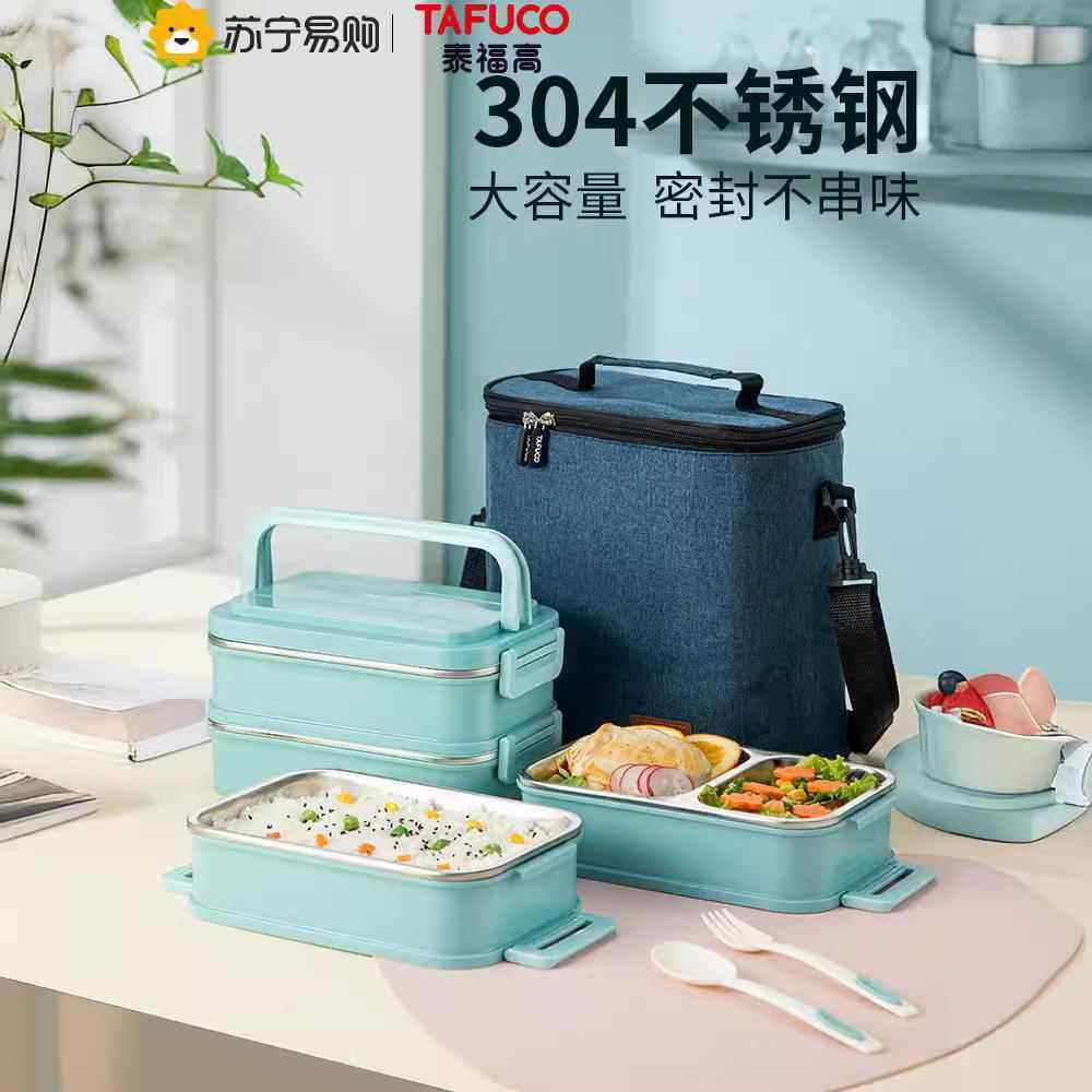 泰福高保温饭盒多层餐盘不锈钢学生上班族简约分格便携便当盒
