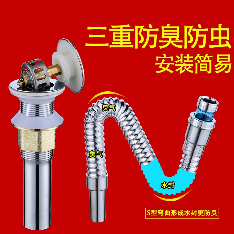 洗脸盆下水管洗手盆池下水器面盆台盆防臭软管排水管弹跳