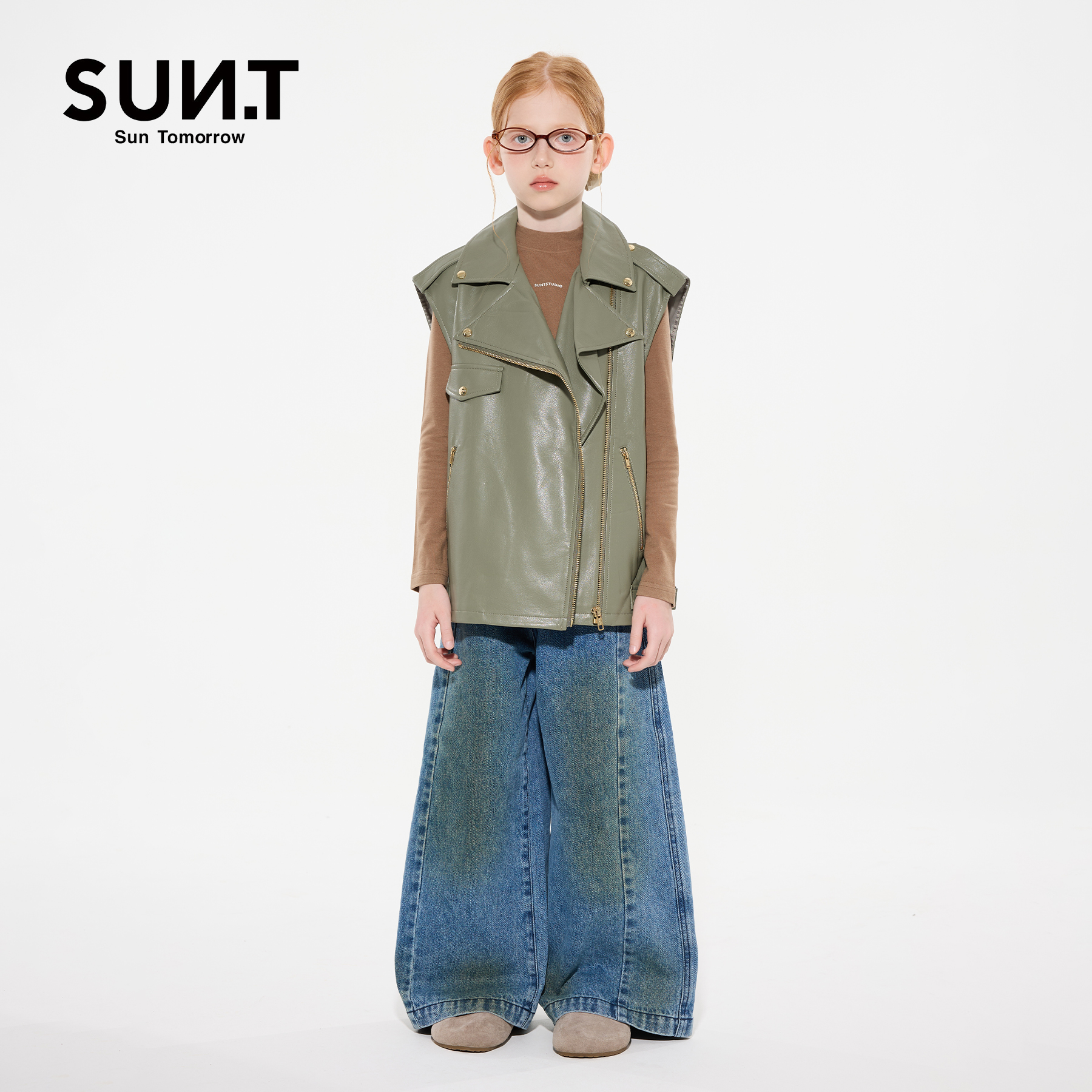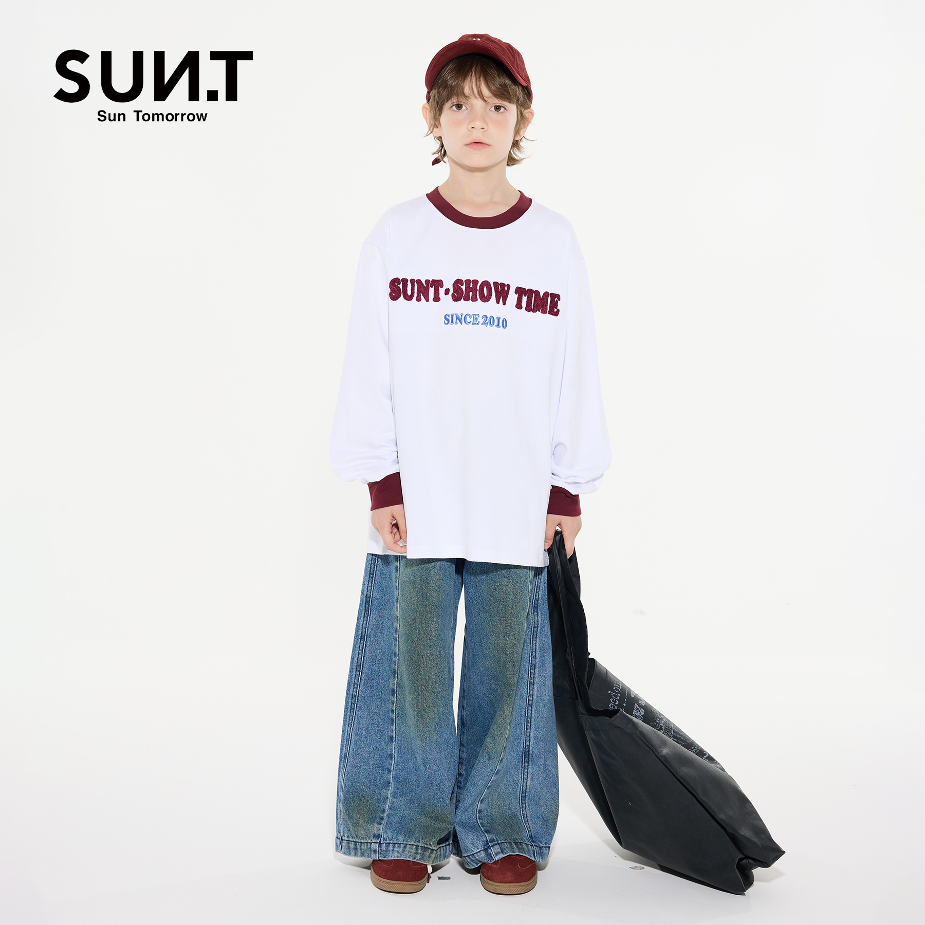 suntomorrow童装牛仔裤2025秋装新款休闲阔腿裤男女中大童长裤子