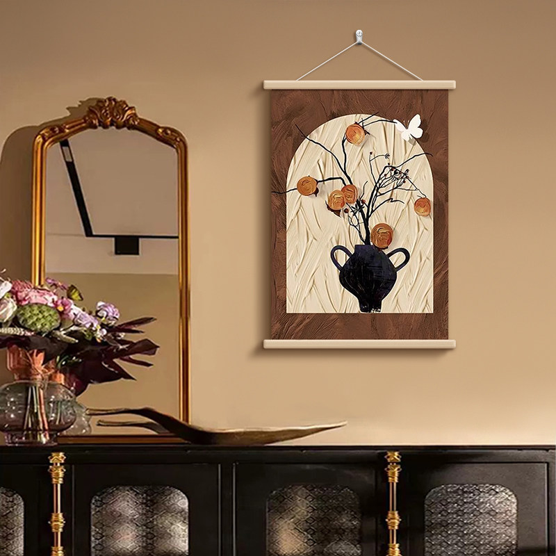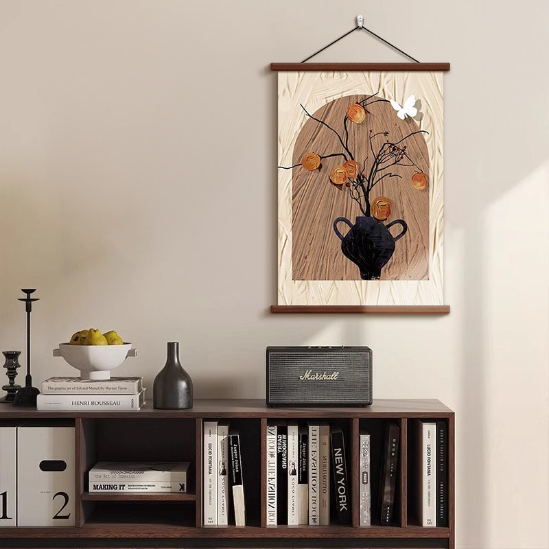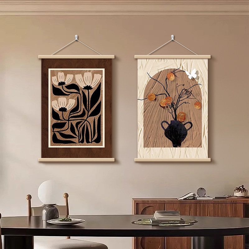 中古风餐厅装饰画柿柿如意客厅沙发背景墙挂画咖啡奶茶店茶室壁画