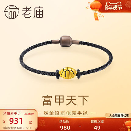 老庙黄金足金龟壳手绳招财进宝富甲天下财运旺5D时尚通勤百搭