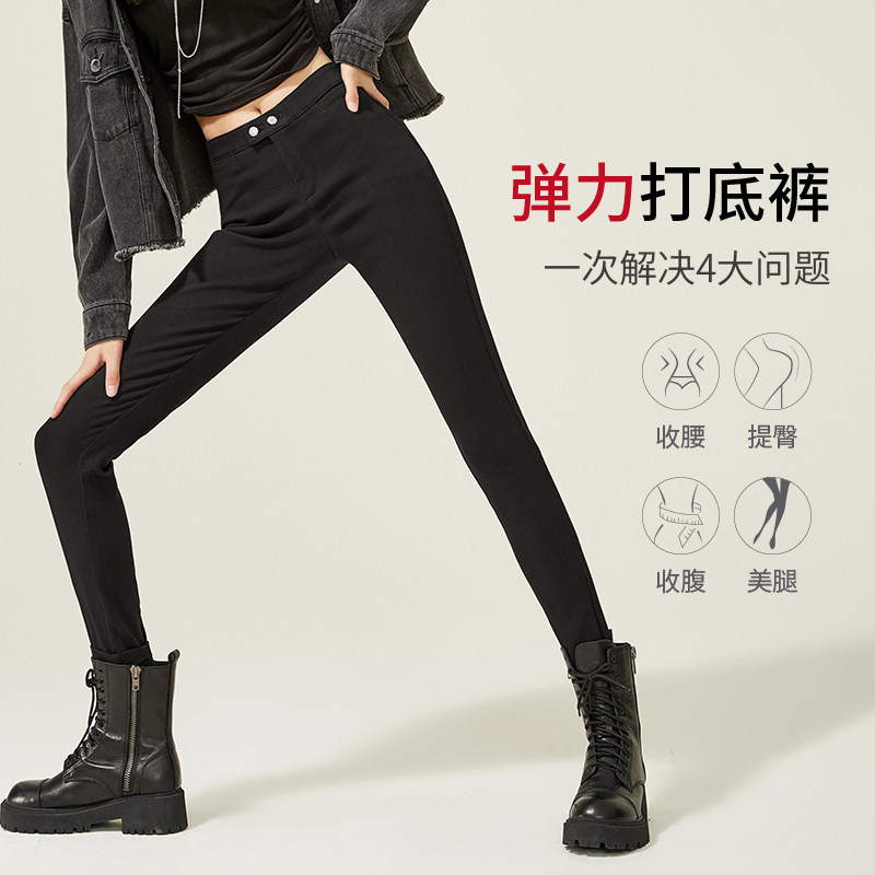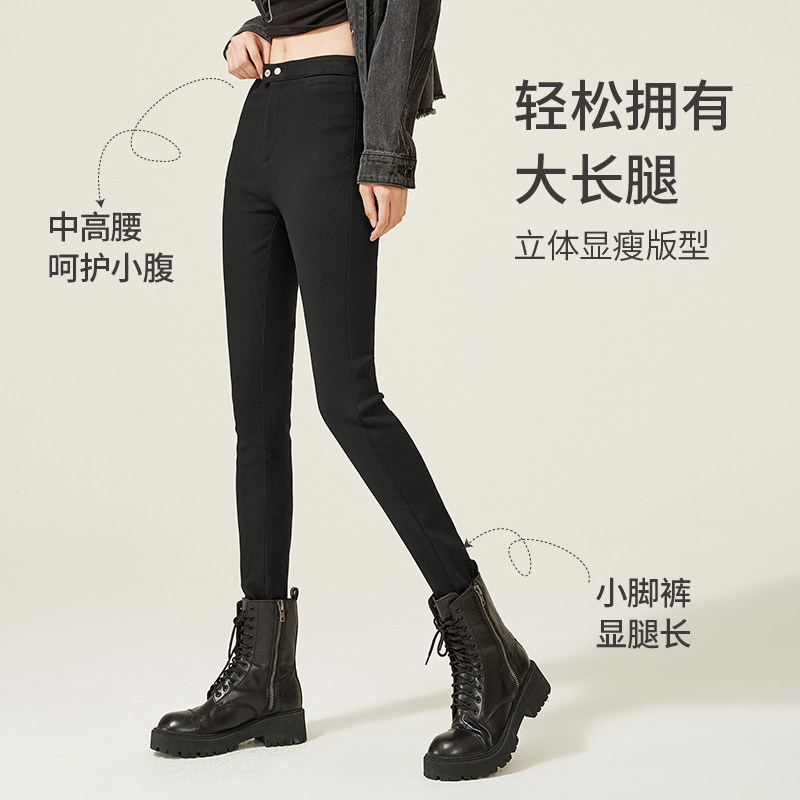逸阳2025冬季新款外穿黑色加绒打底裤女高腰紧身显瘦加厚铅笔裤子