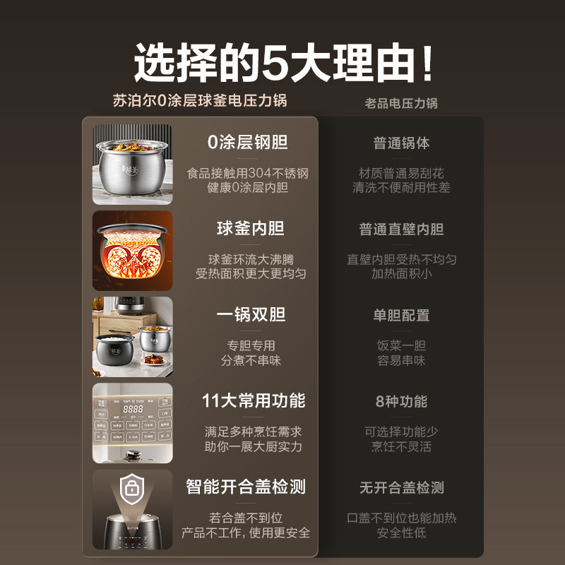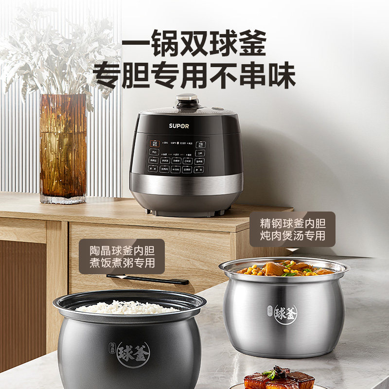 苏泊尔电压力锅0涂层不锈钢球釜双胆5L大容量电高压锅多功能饭煲