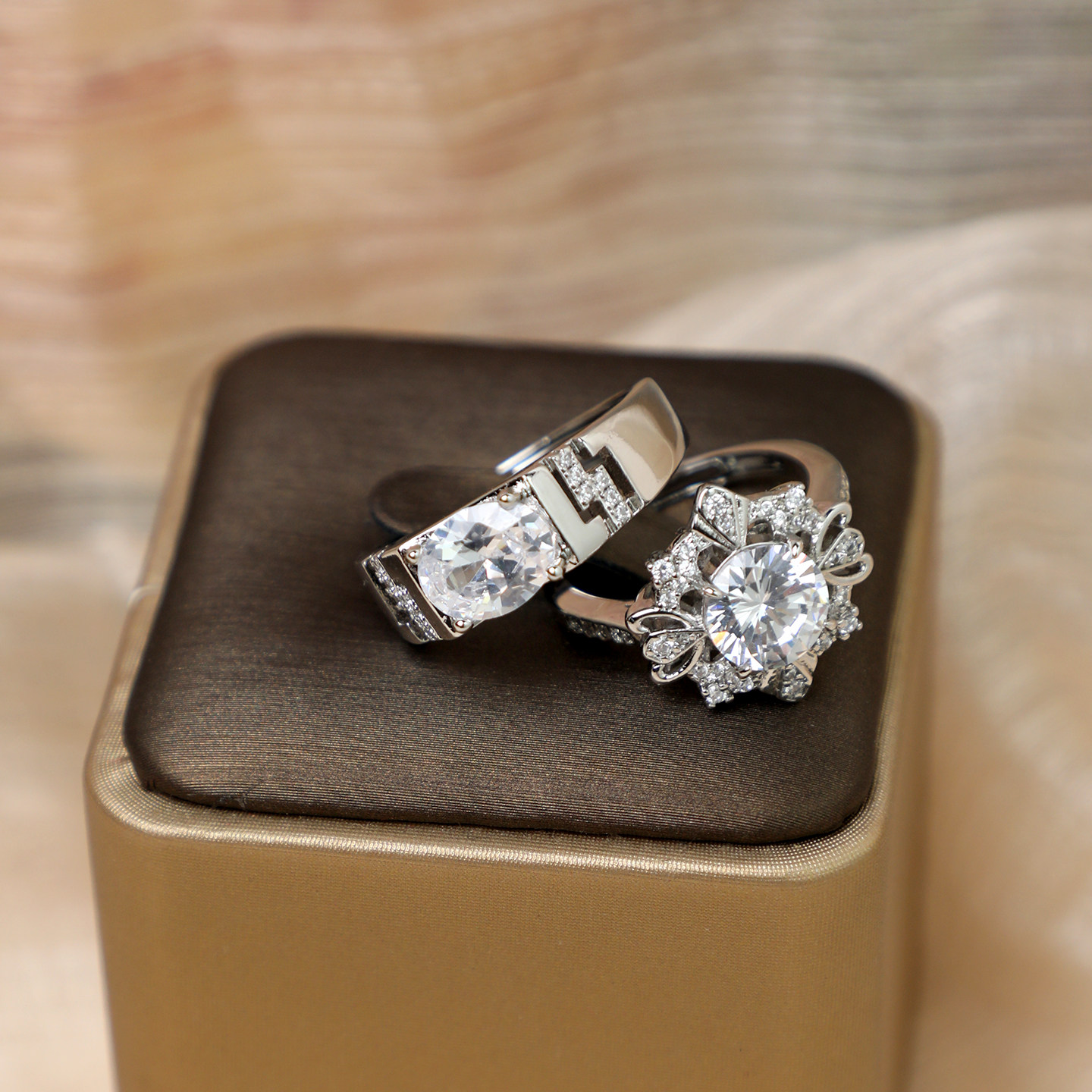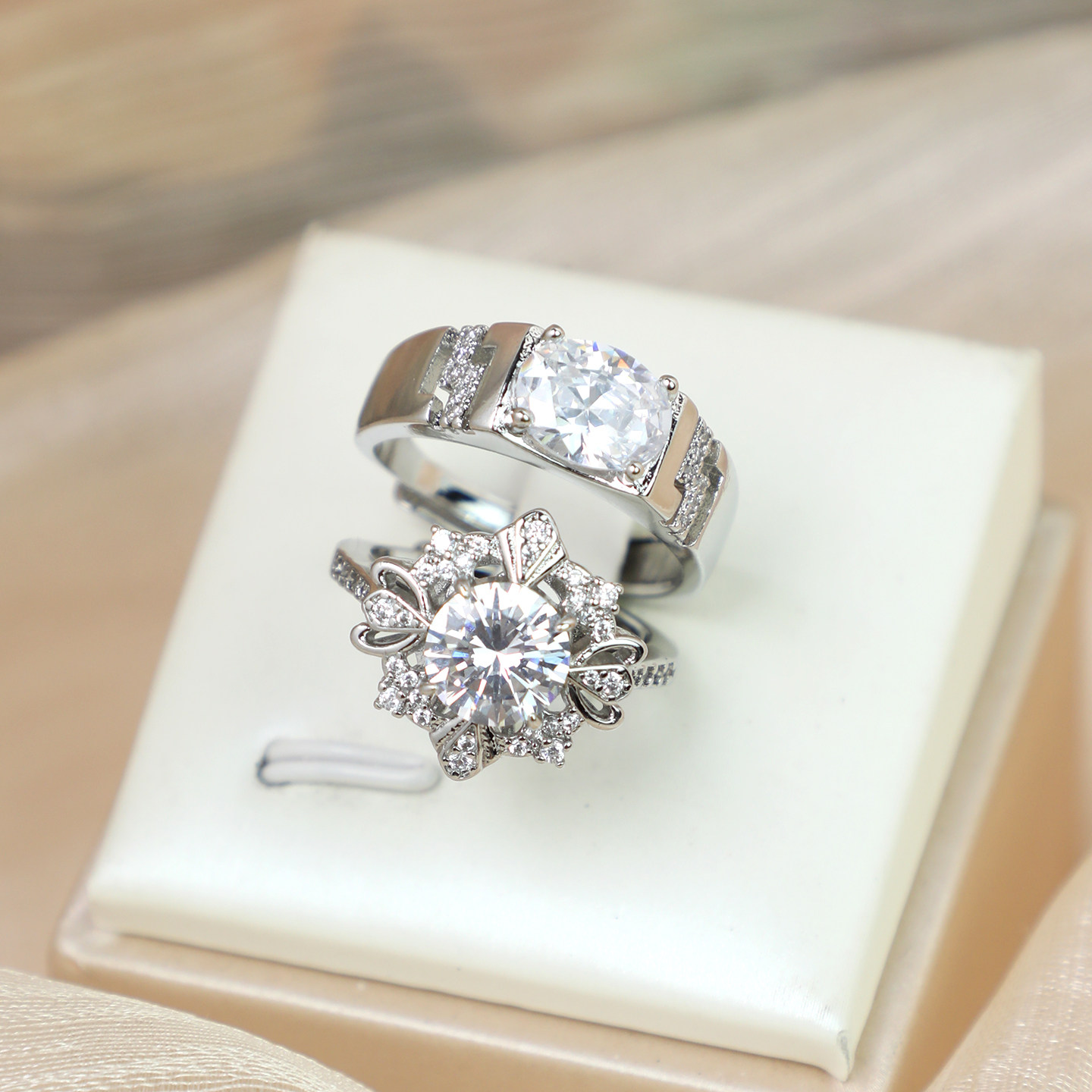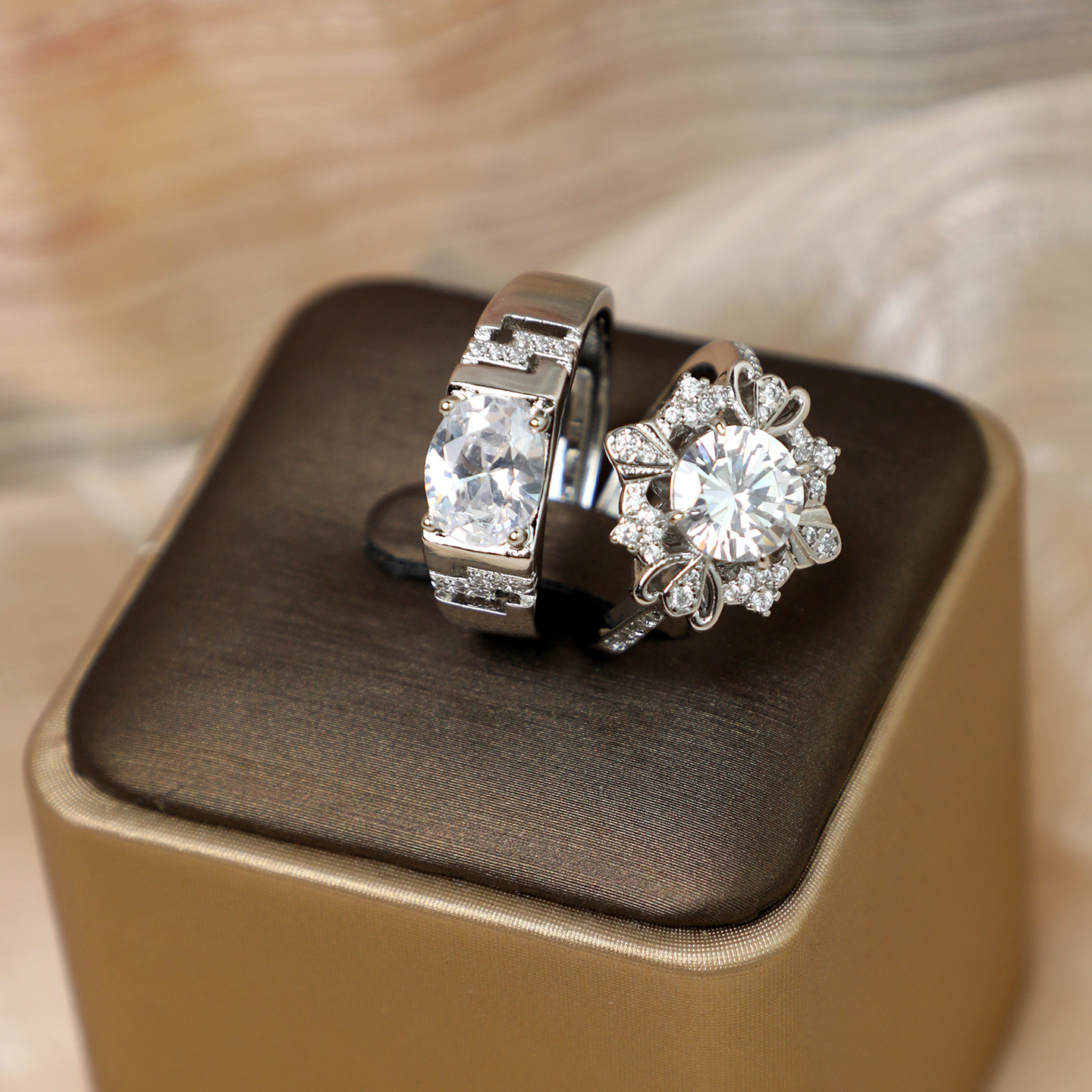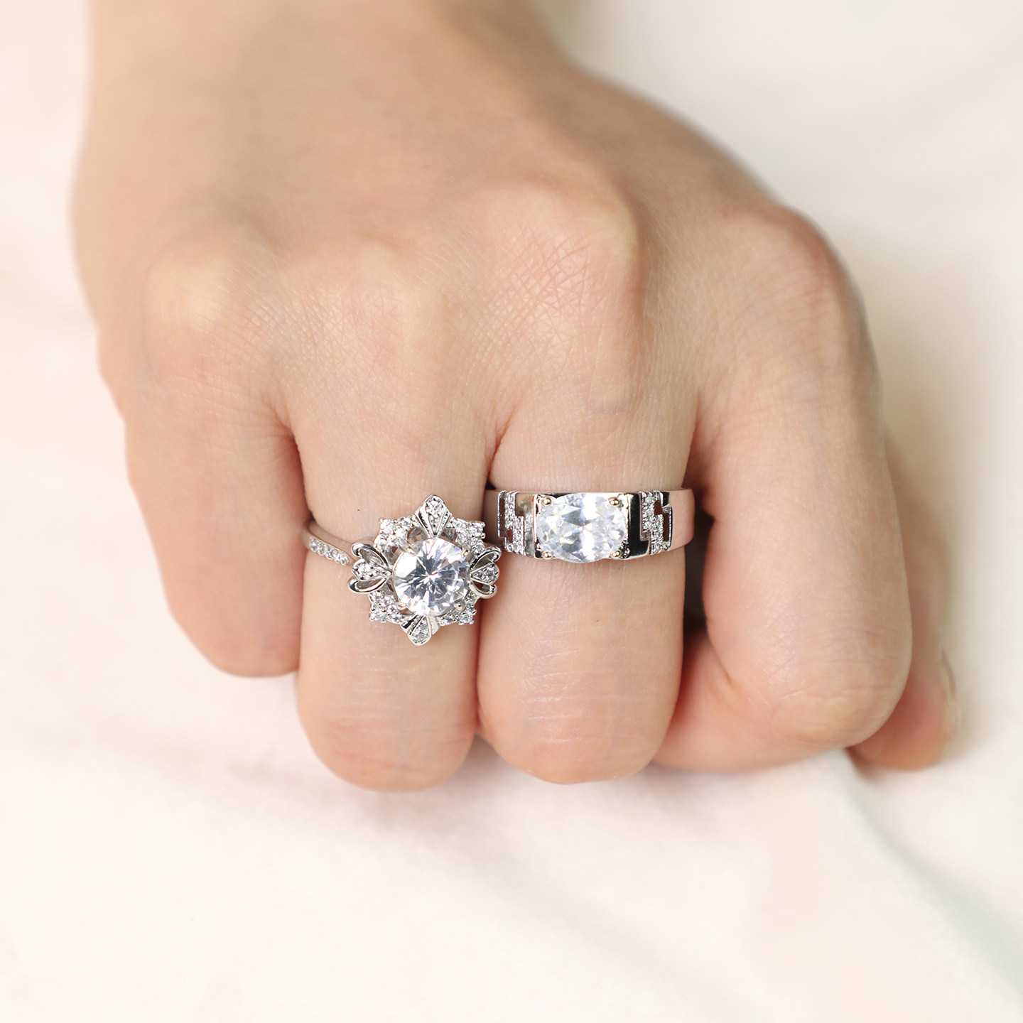 两克拉雪花仿真活口对戒