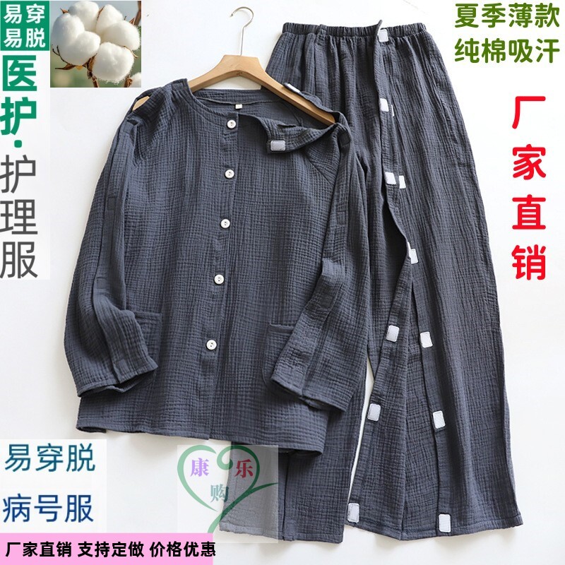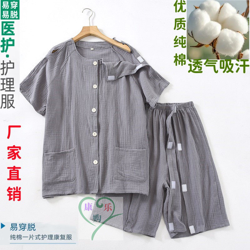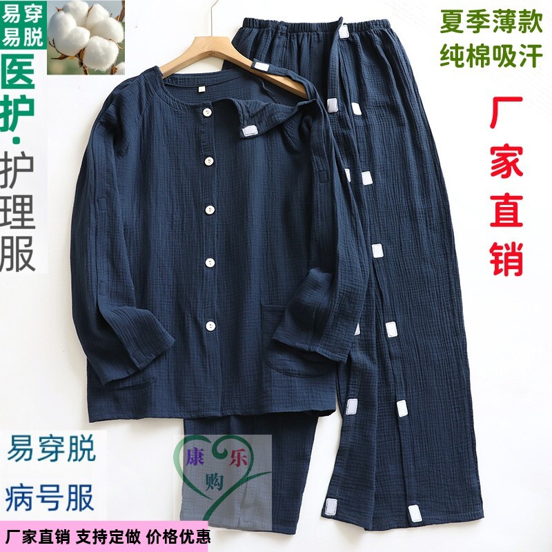 男全棉透气针灸专用衣服骨折术后老人卧床睡衣吸汗PICC专用护理服
