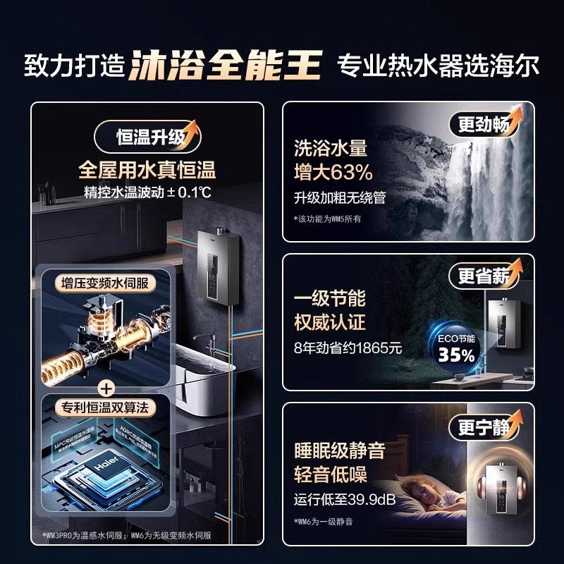 WM5海尔燃气热水器家用电水伺服恒温天然气16升强排式恒温13升