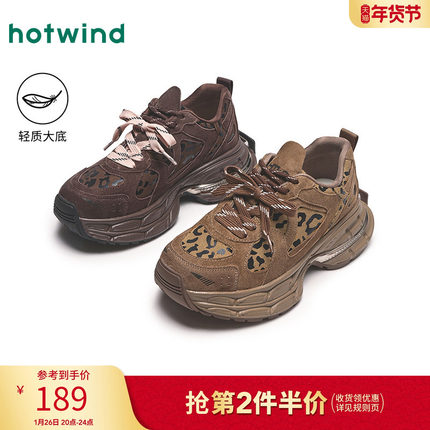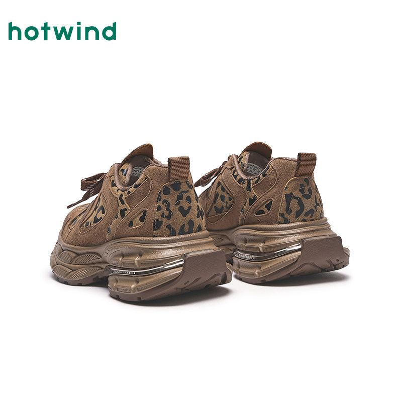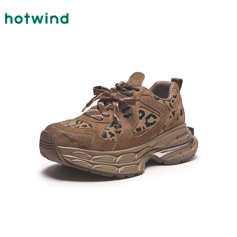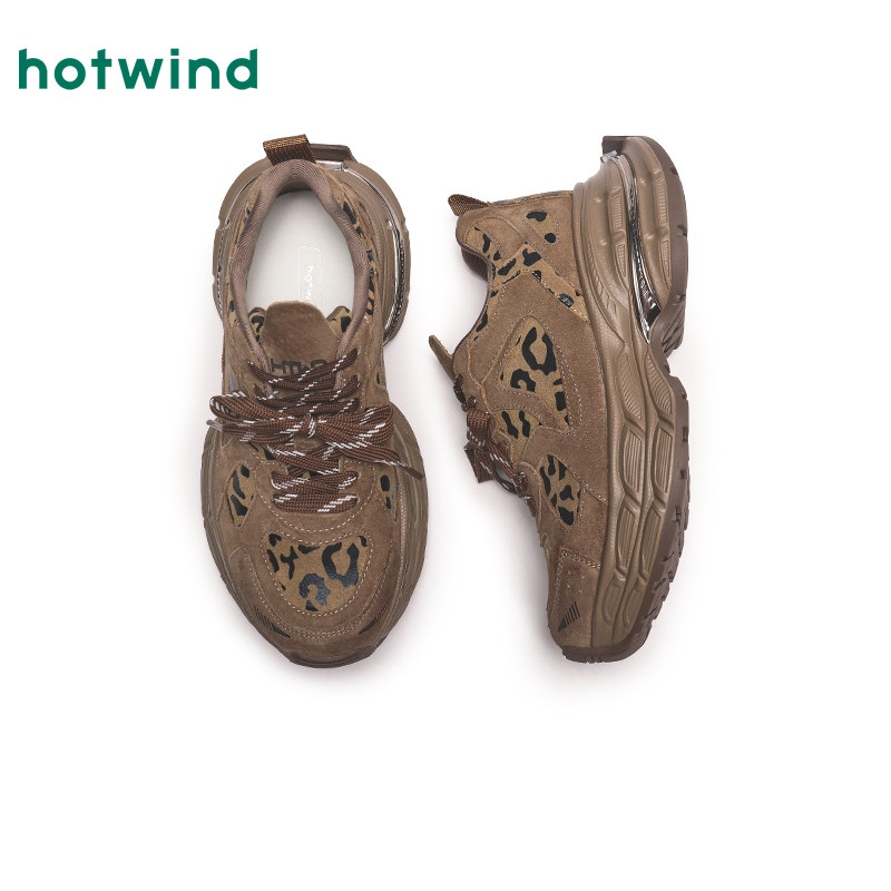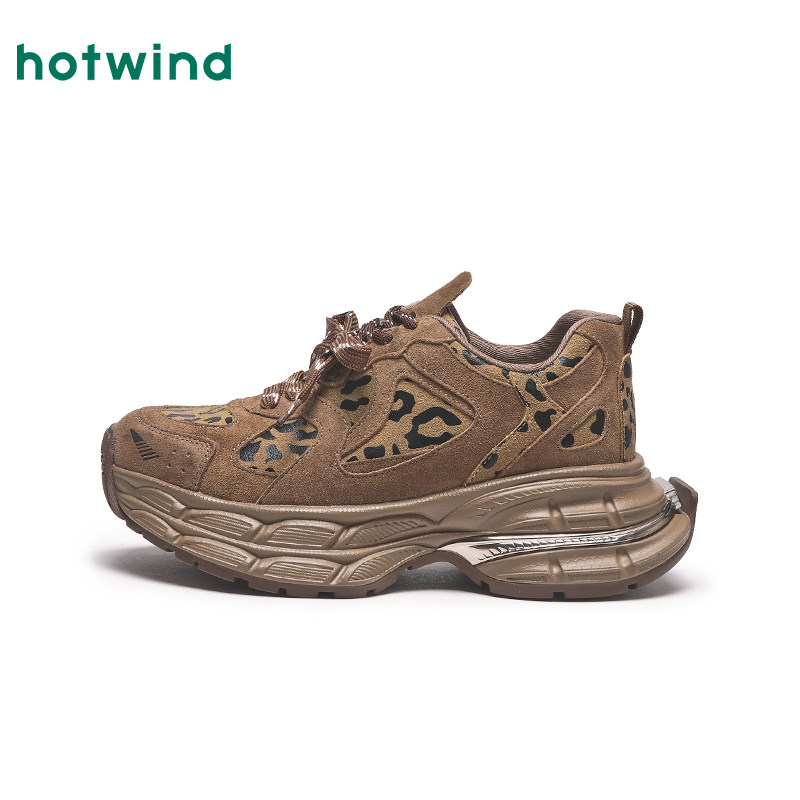 热风厚底老爹鞋女款2025年秋季新款复古豹纹休闲鞋百搭时尚慢跑鞋