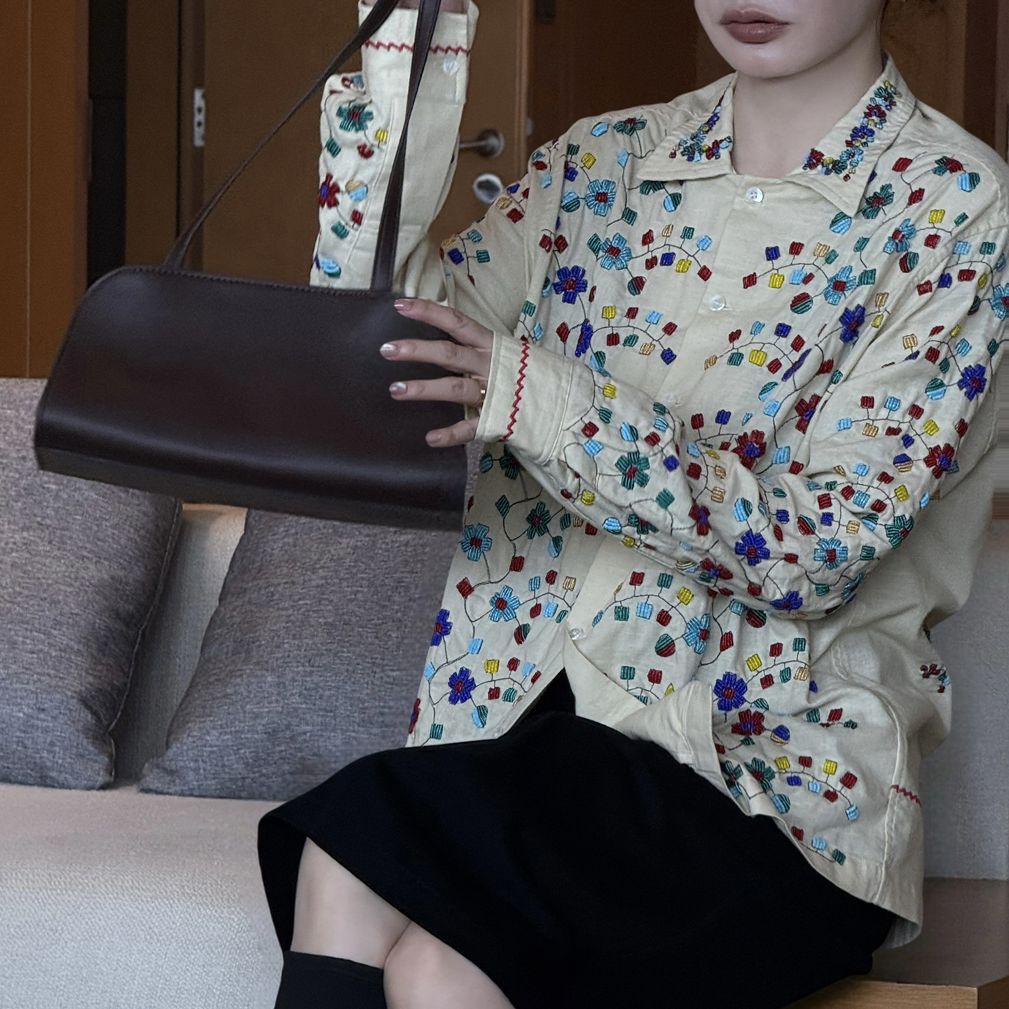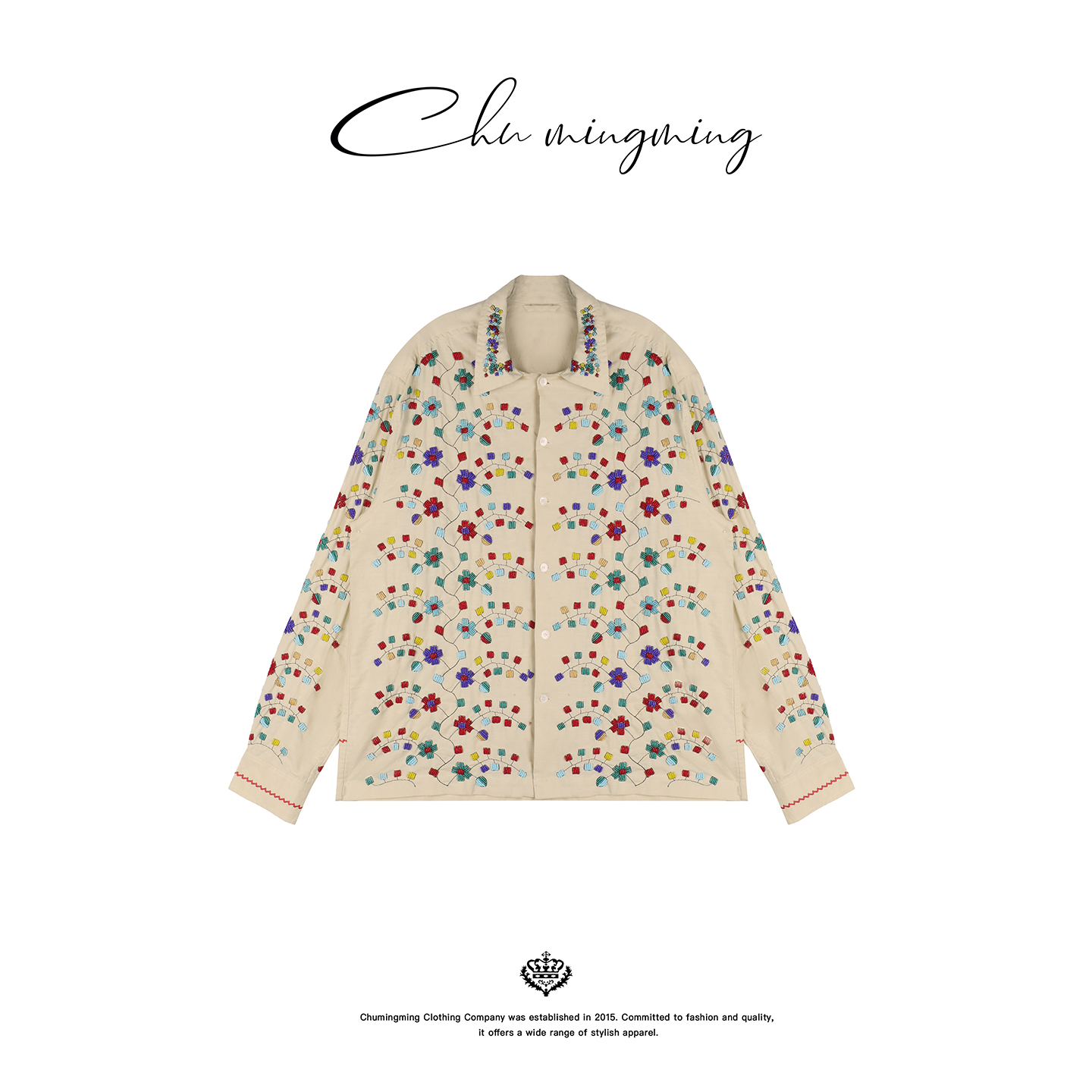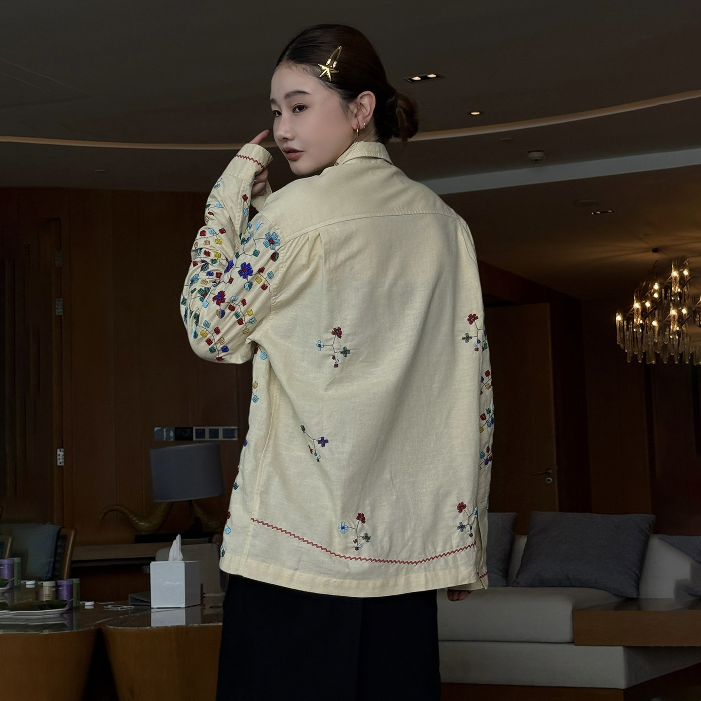 CHU楚妞[锦绣华章]棉麻混纺重工刺绣钉珠衬衫2025秋季新款女衬衣