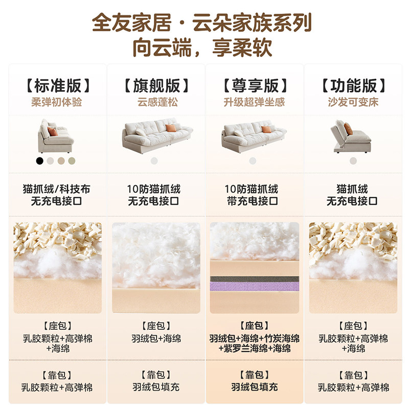 全友家居奶油风网红布艺云朵沙发客厅直排小户型三人位猫抓布沙发