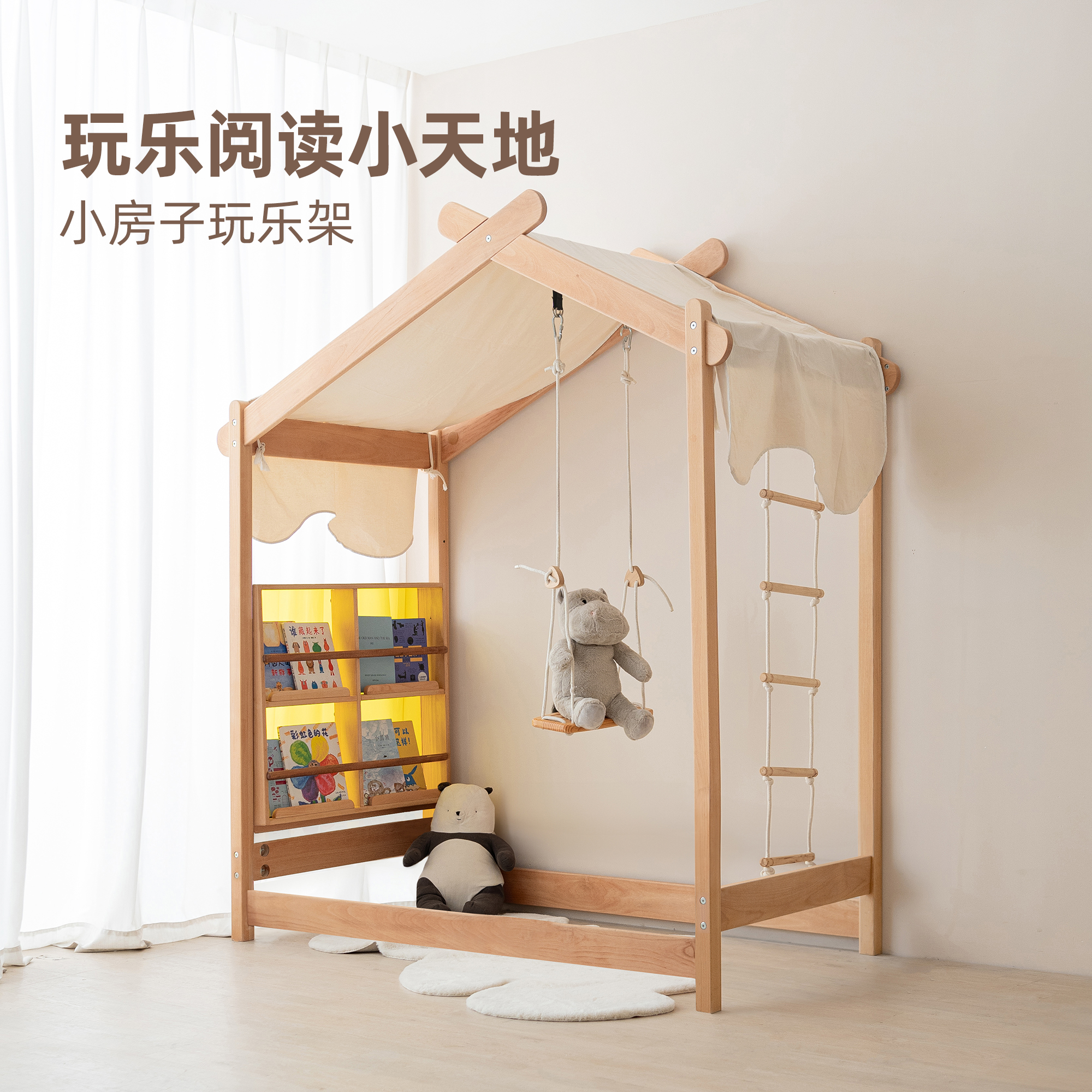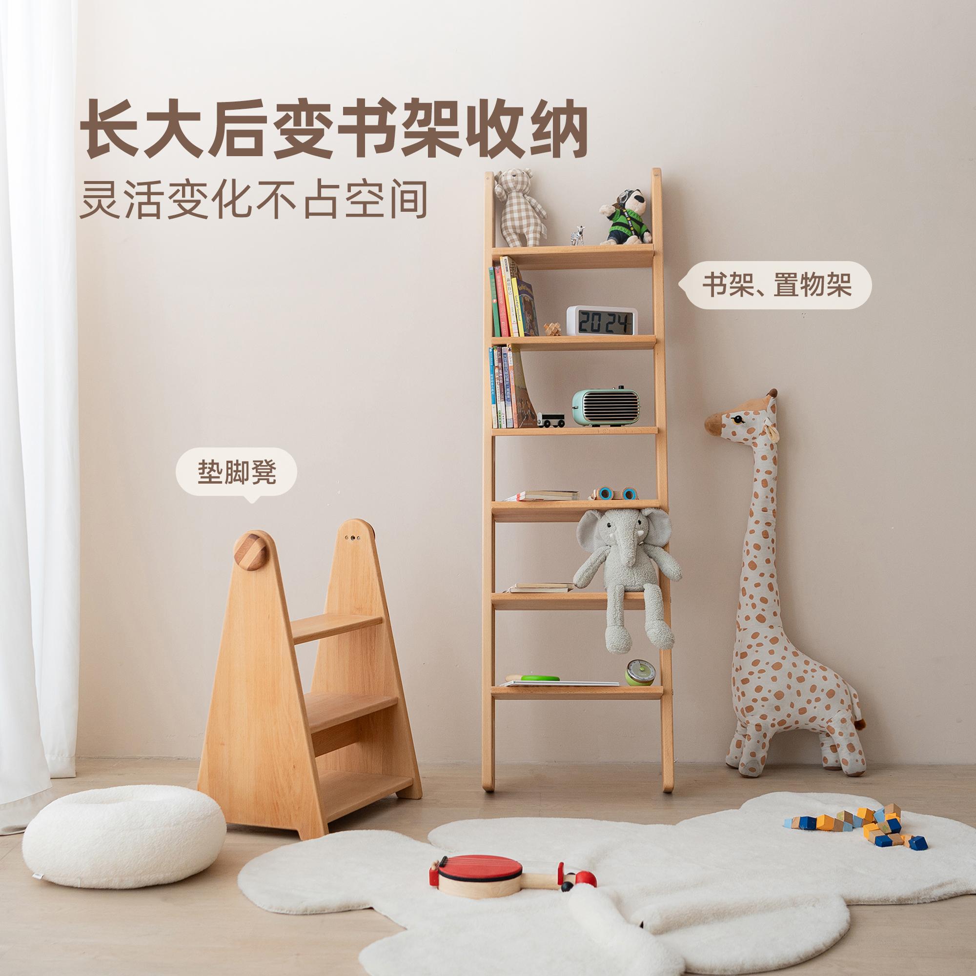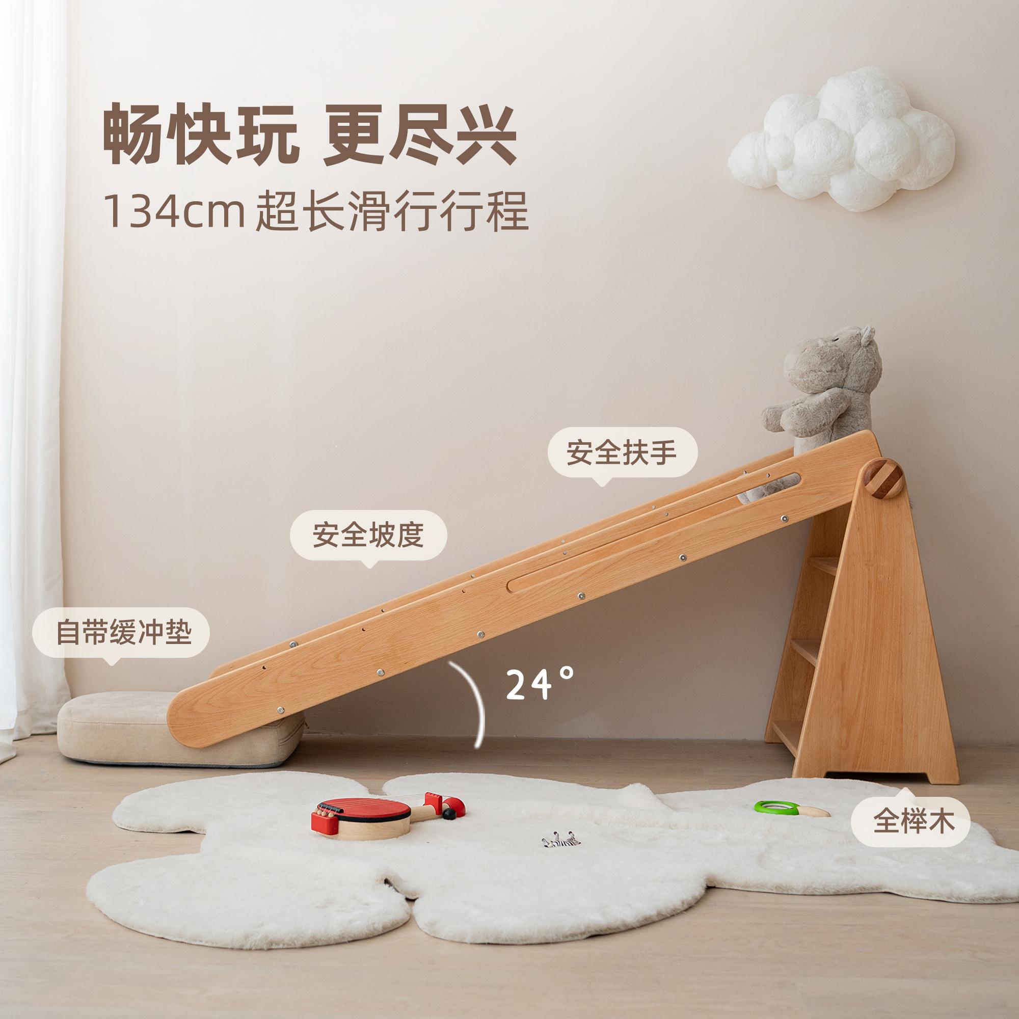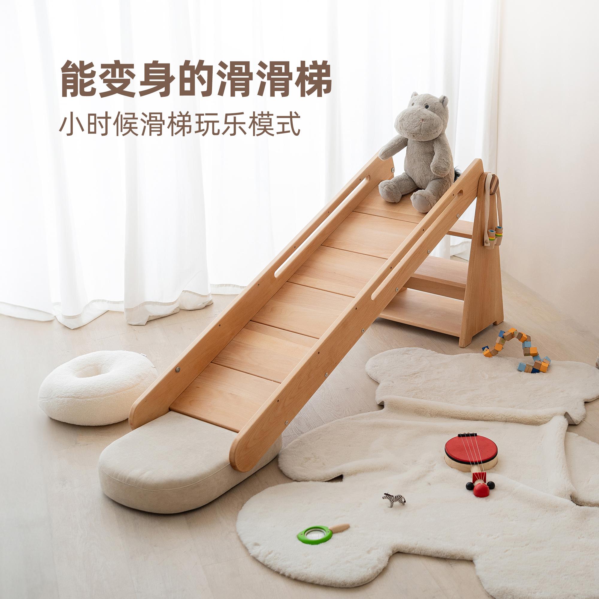 玩梦超人 实木滑滑梯室内小型家用儿童宝宝书架置物架迷你滑梯