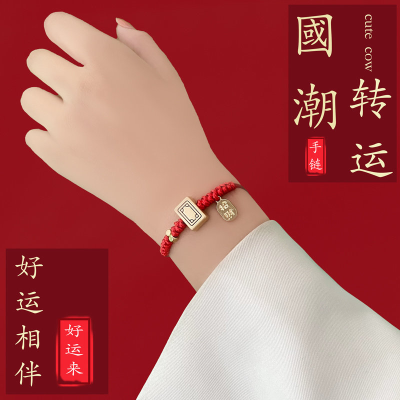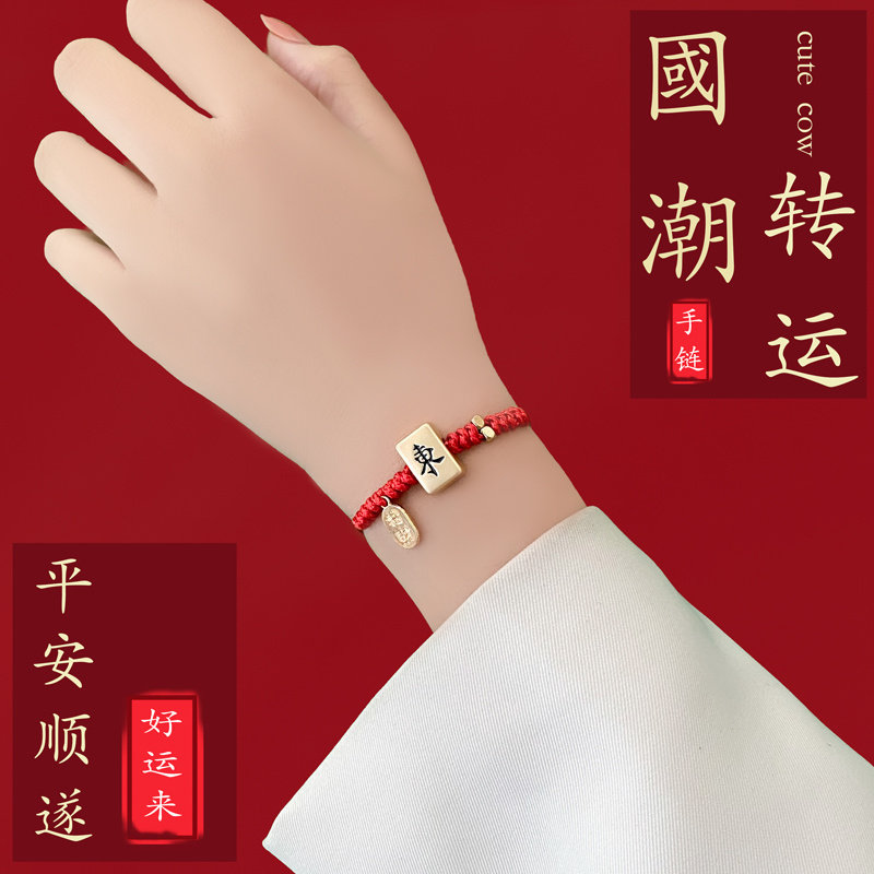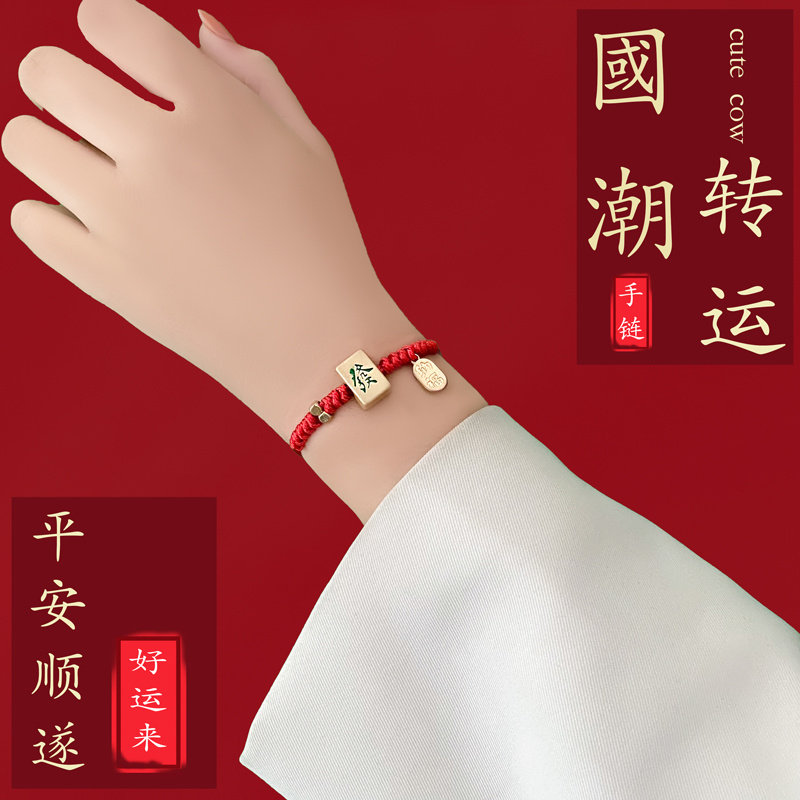 麻将红中发财手链ins小众设计本命年女属虎手镯首饰闺蜜女生礼物