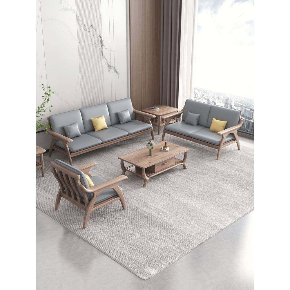 白蜡木实木沙发科技布棉布艺坐垫北欧简约大气客厅小户型躺椅脚踏