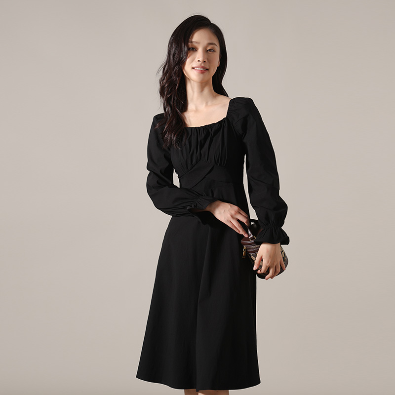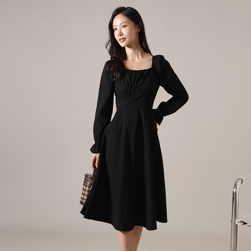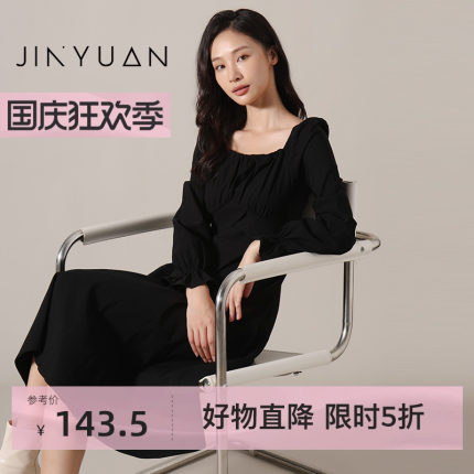 金苑2023年新款女装赫本风黑色连衣裙子秋高级感气质长裙G233115