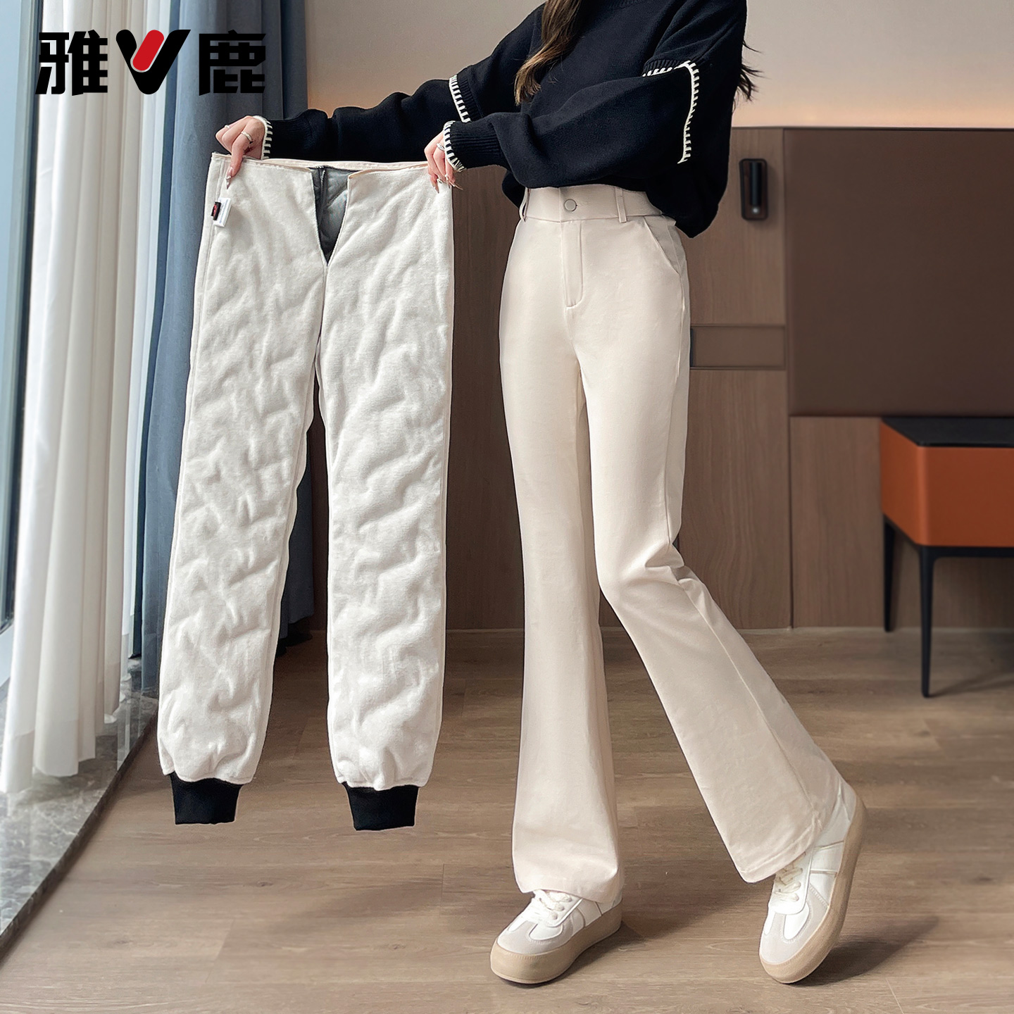 雅鹿微喇羽绒裤女外穿2025冬季新款高腰弹力显瘦时尚可拆卸棉裤