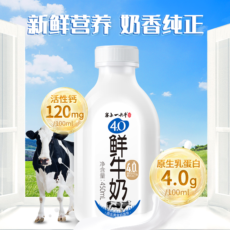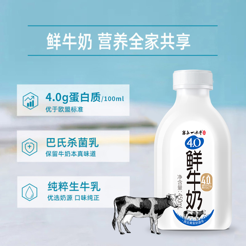 塞上一头牛 4.0鲜牛奶 450ml*4瓶 低温巴氏杀菌纯生牛乳营养奶