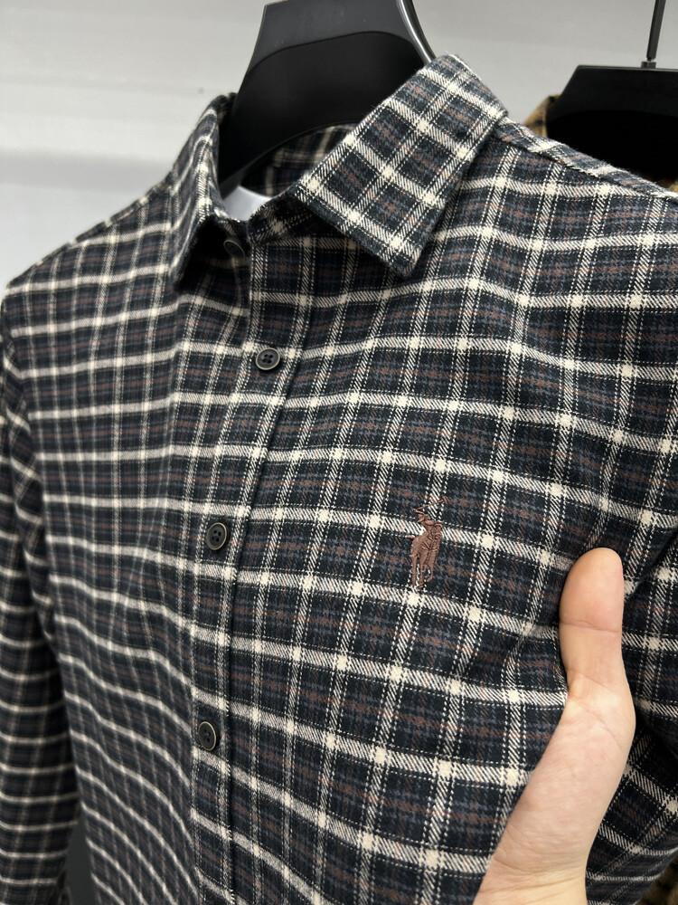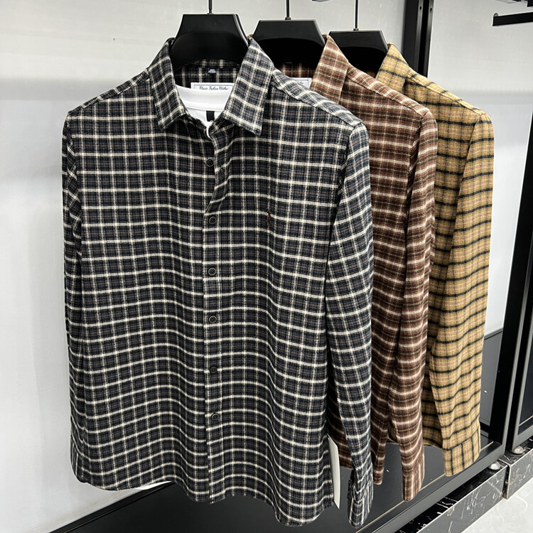 秋季新款刺绣小格子长袖加厚衬衫男士高级感休闲时尚潮流气质百搭