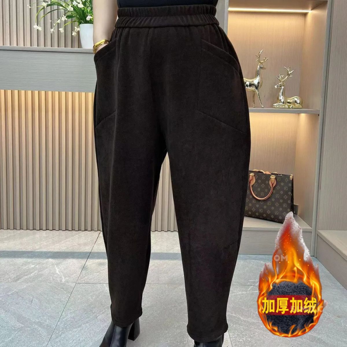 秋冬季中老年妈妈裤子女士保暖裤休闲直筒加绒加厚松紧腰大码女裤